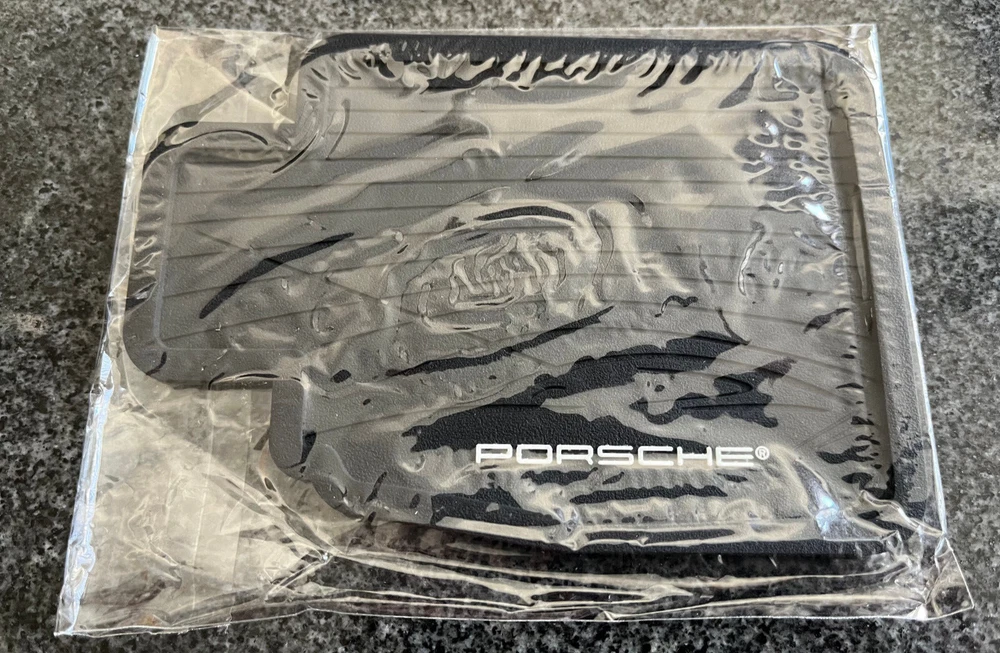 PORSCHE PERSONAL RUBBER ONE DRINK COASTER HOLDING TRAY "FLOOR MAT" DESIGN NEW THIS IS AN OFFICIAL PORSCHE PRODUCED BLACK "RUBBER FLOOR MAT" DESIGNED SINGLE DRINK COASTER. THIS COASTER CLEVERLY TAKES THE FORM OF A PORSCHE CAR FLOOR MAT! THIS COASTER MEASURES 5.00" x 3.50" INCHES AND IS NON-SLIP ON GLASS OR MARBLE SURFACES. HIGHLY RECOMMENDED TO ALL PORSCHE LOVERS, COMES IN A PLASTIC SELF-SEAL BAG. PLEASE TAKE TIME TO CHECKOUT ALL MY OTHER PORSCHE LISTINGS IN MY EBAY STORE.
