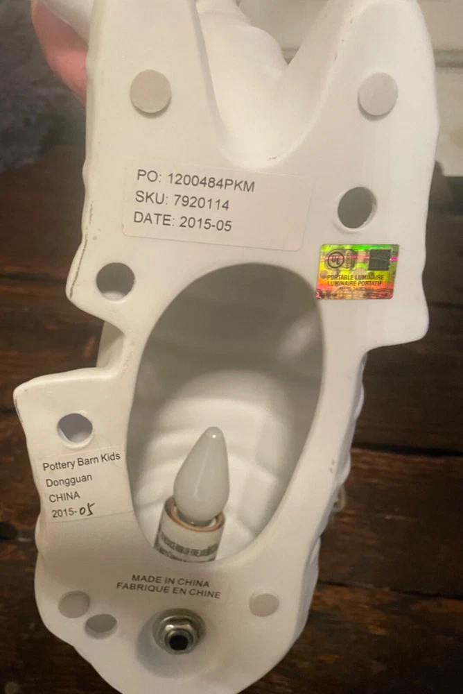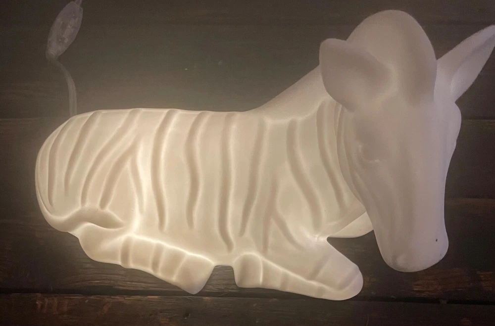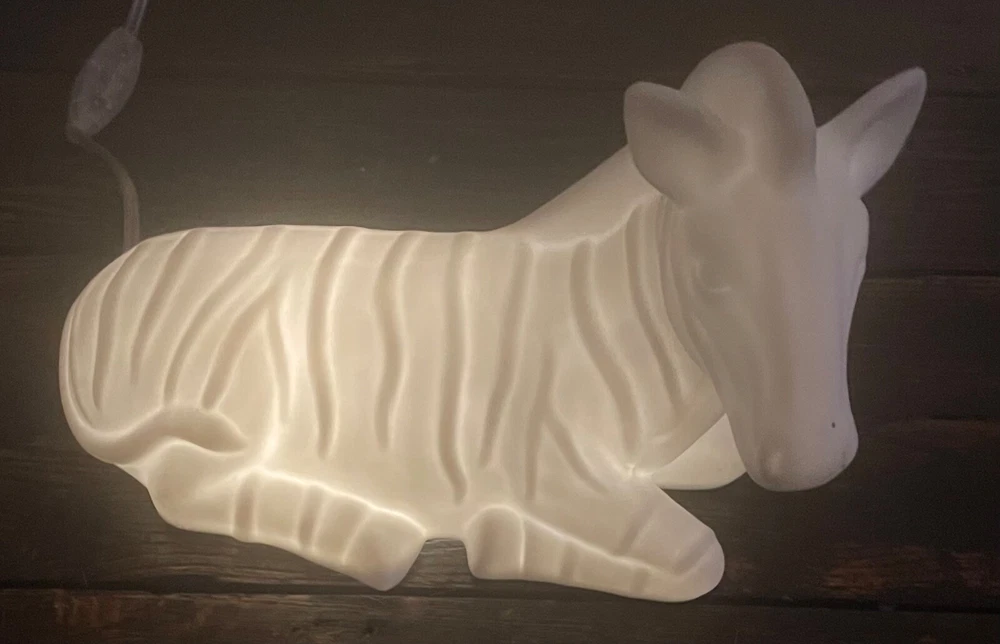 Material: Ceramic Department: Kids, Teens Cord Color: Clear Type: Table Lamp Style: Novelty Color: White Theme: Zebra Item Height: 7.5” high Pattern: Striped Model: Zebra MPN: 95-7920114 Room: Bedroom, Hallway, Home Office/Study, Porch, Sunroom gtin13: Does not apply Features: Cord – 8.5 ft. long, Soft glow, Rubber feet Item Length: 11.5” long Brand: Pottery Barn Item Width: 6.5” wide UPC: Does not apply