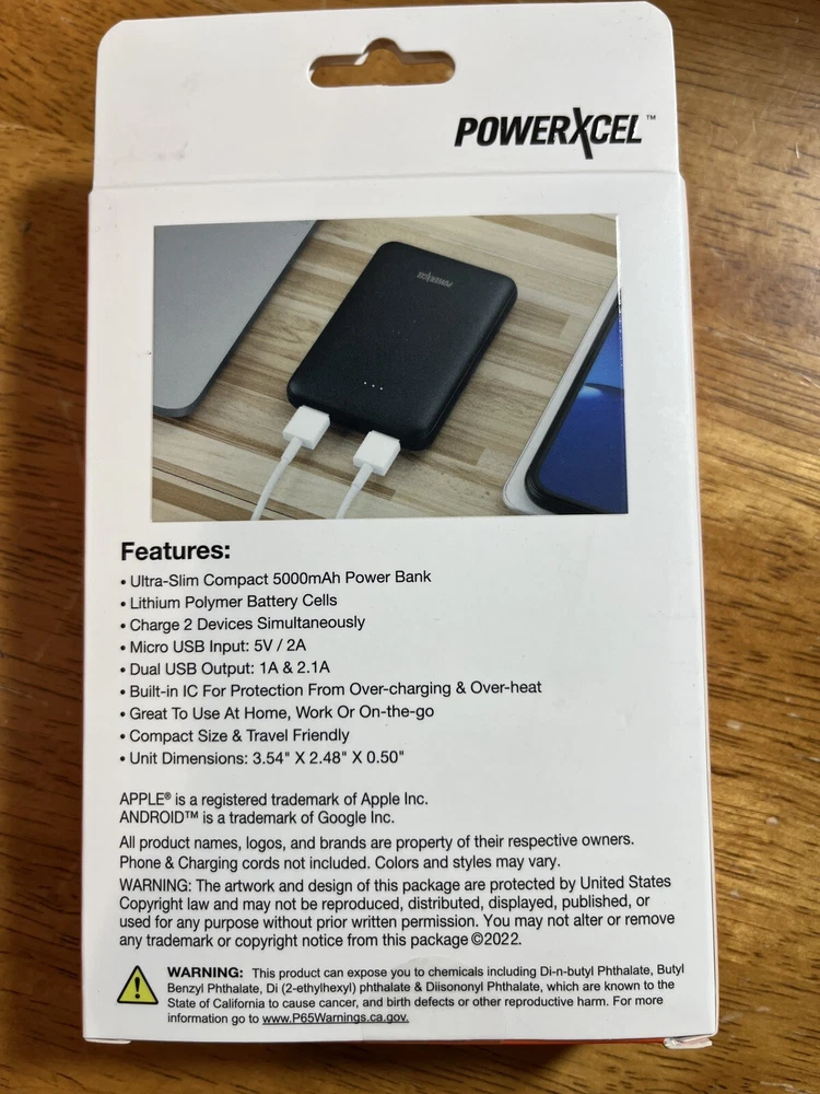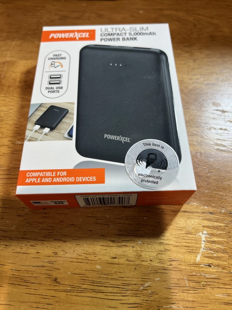 The PowerXcel Ultra Slim Compact Power Bank is designed for Apple and Android devices, with a capacity of 5,000mAh. It features an ultra-slim design and is suitable for personal use. This power bank is compatible with the PowerXcel Ultra Slim Compact model.
