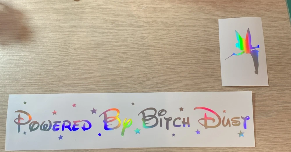 MADE IN USA. FREE SHIPPING ***This listing is for ONE~12.367 Wide x 3.005 Tall~“Powered By Bitch Dust~HOLOGRAPHIC COLOR ~Vinyl Decal Sticker *** SEE ALL PHOTOS -***Perfect for your car window, or any clean, smooth non-porous surface ***Comes with easy to install instructions ***No Background - Your Background is what you apply the decal to. ***Mailed in a Stamped Envelope~ NO TRACKING # FREE SHIPPING ***If you have any questions please feel free to contact me, I will be more than happy to assist you Thank You
