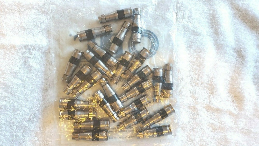 50 Pieces (2 Bags) Belden PPC EX11N716 PLUS RG11 C oaxial Cable Compression Connectors/New KEY FEATURES PPC'S patented RG11 compression connector EX11 connectors are the only Universal Compression connector available today. One piece design RG11 EX11 Compression Connector. Accepts industry standard 1/4"-1/4"-1/4" cable prep. O-Ring provides complete seal between nut & body. Superior corrosion resistance and RF integrity. Compression Connectors, Belden PPC Brand, Constructed with Nickel and Anti-Corrosion Materials, Compatible to All F-Type Connector Device That Utilize RG59 RG6 RG7 RG21 AUCTION INCLUDES 50 (2 Bags) Belden PPC RG11 Compression Connectors EX11N716PLUS Bag is distressed but, all fittings are there. Thank-You for Looking!