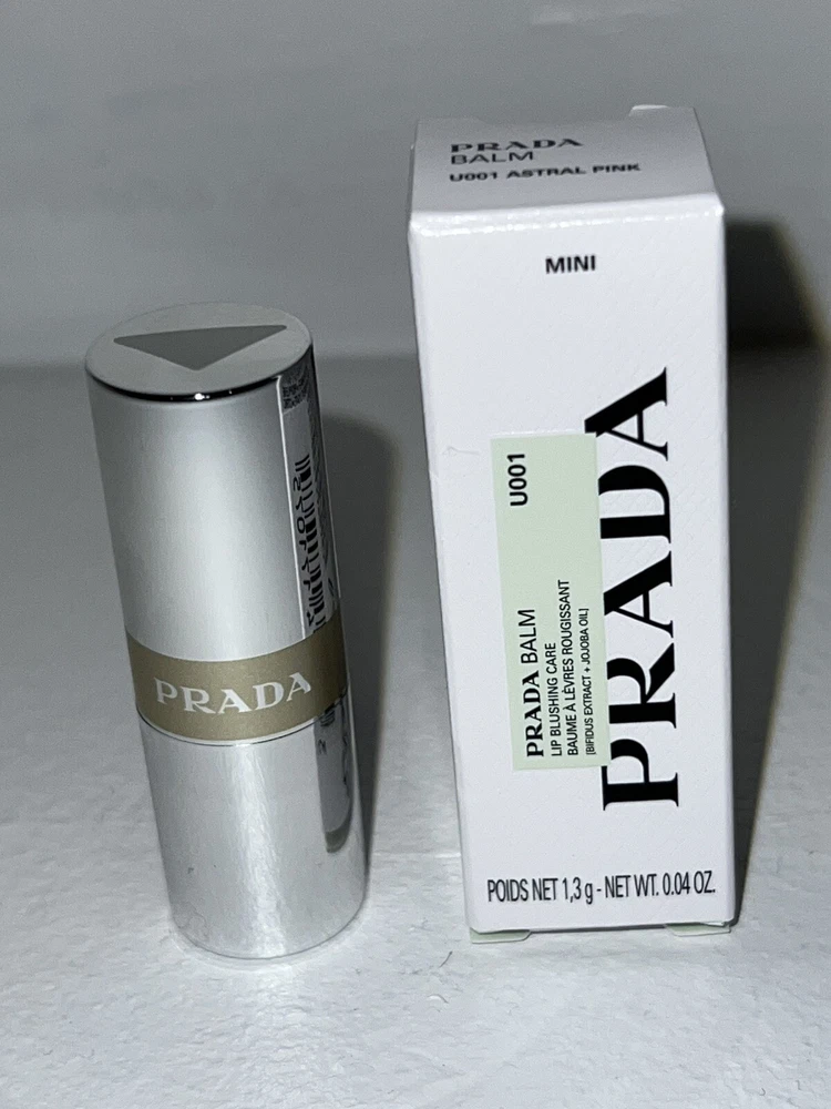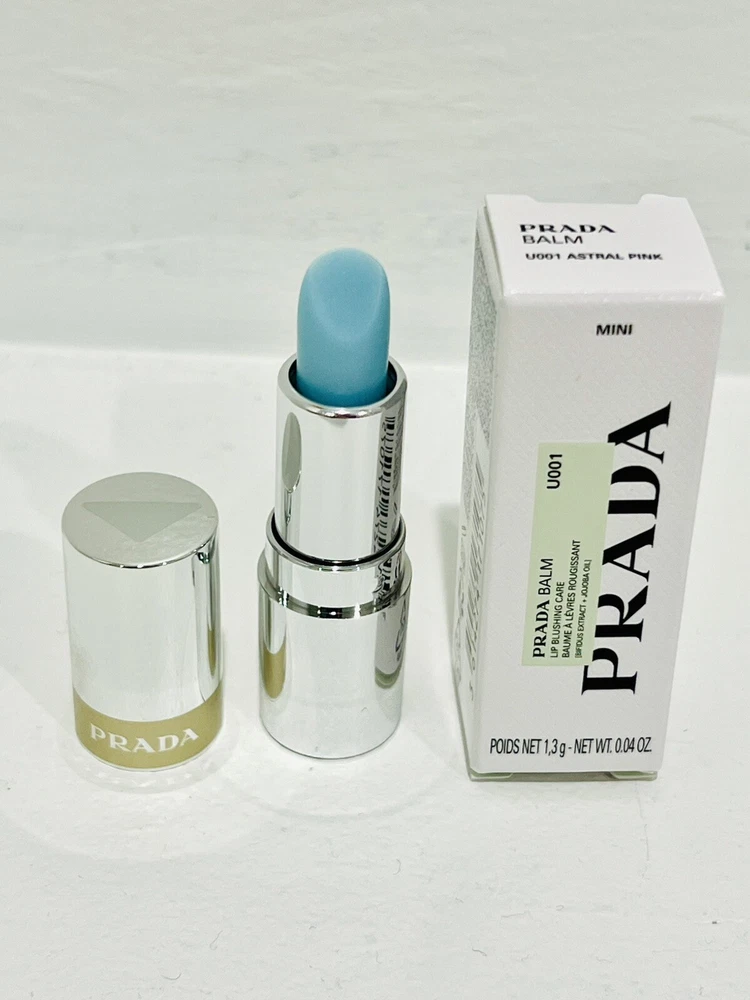 PRADA Astral Pink Mini (Blue) Balm Lip Blushing Care U001 0.04 Oz 1.3g NIB New in Box This is the trending popular balm that everyone wants! The one that celebrity Sabrina Carpenter wears! It changes from blue to pink on your lips with your own PH Level! Contains bifidus extract & jojoba oil & repairs the lips barrier in 2 weeks. The larger size sells for $50 in stores & is sold out everywhere!