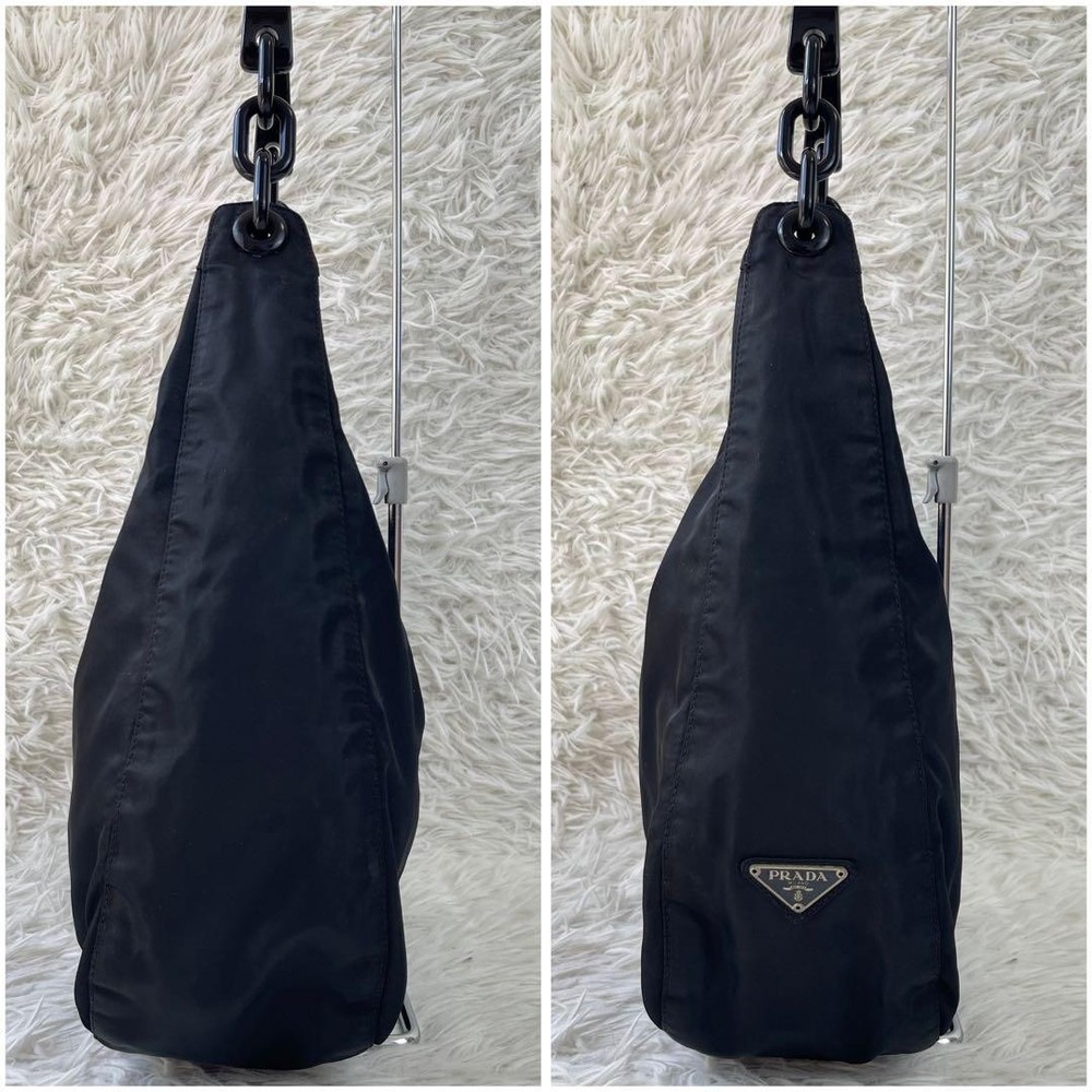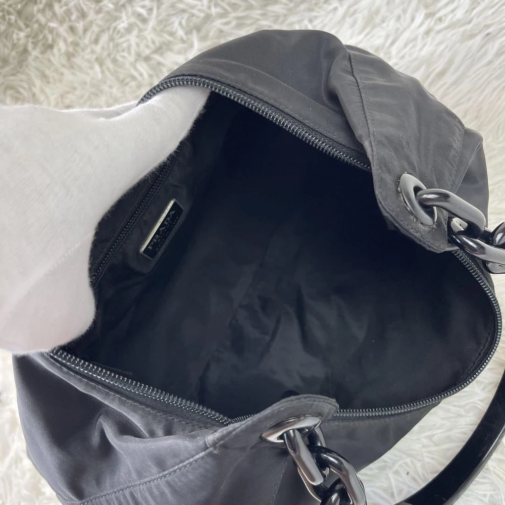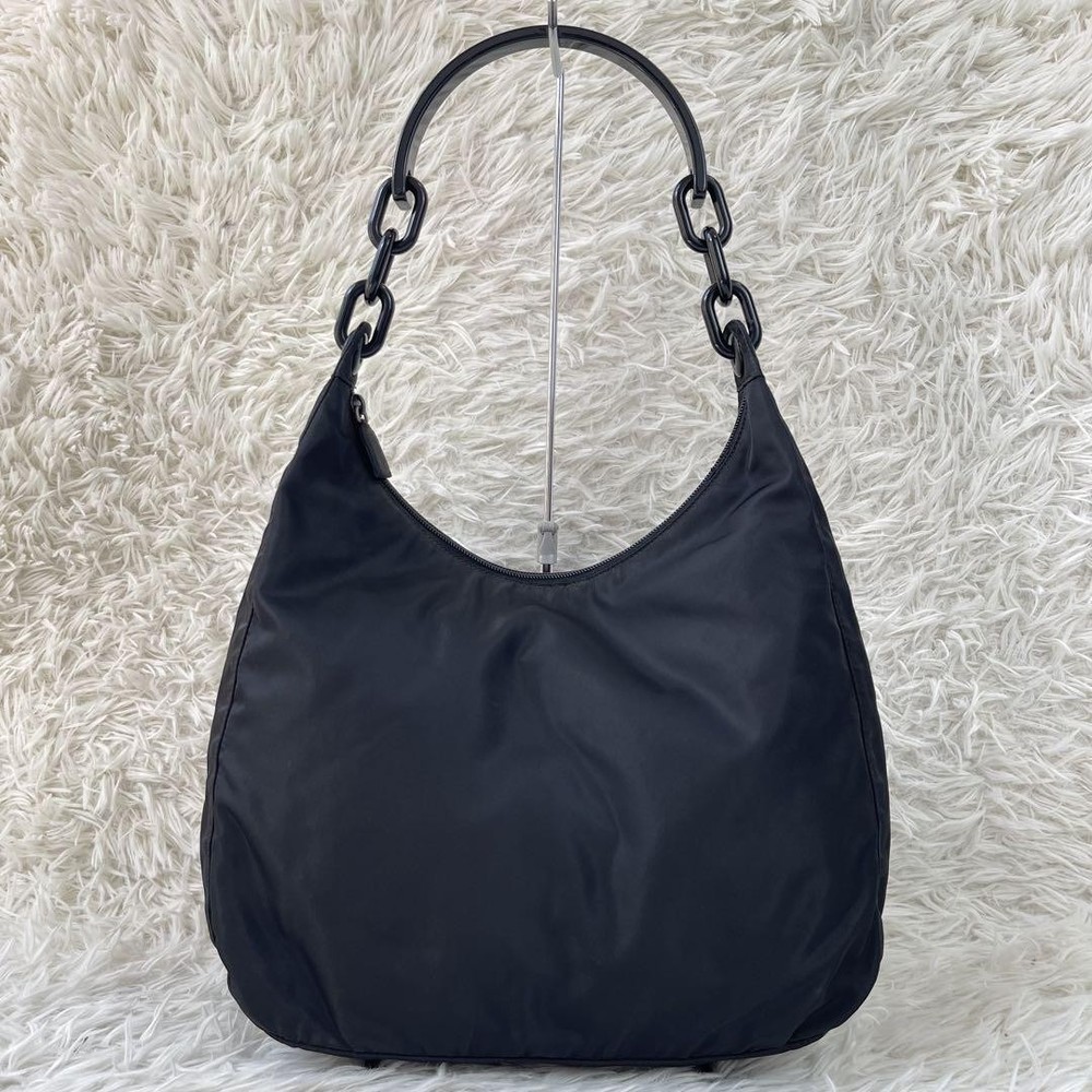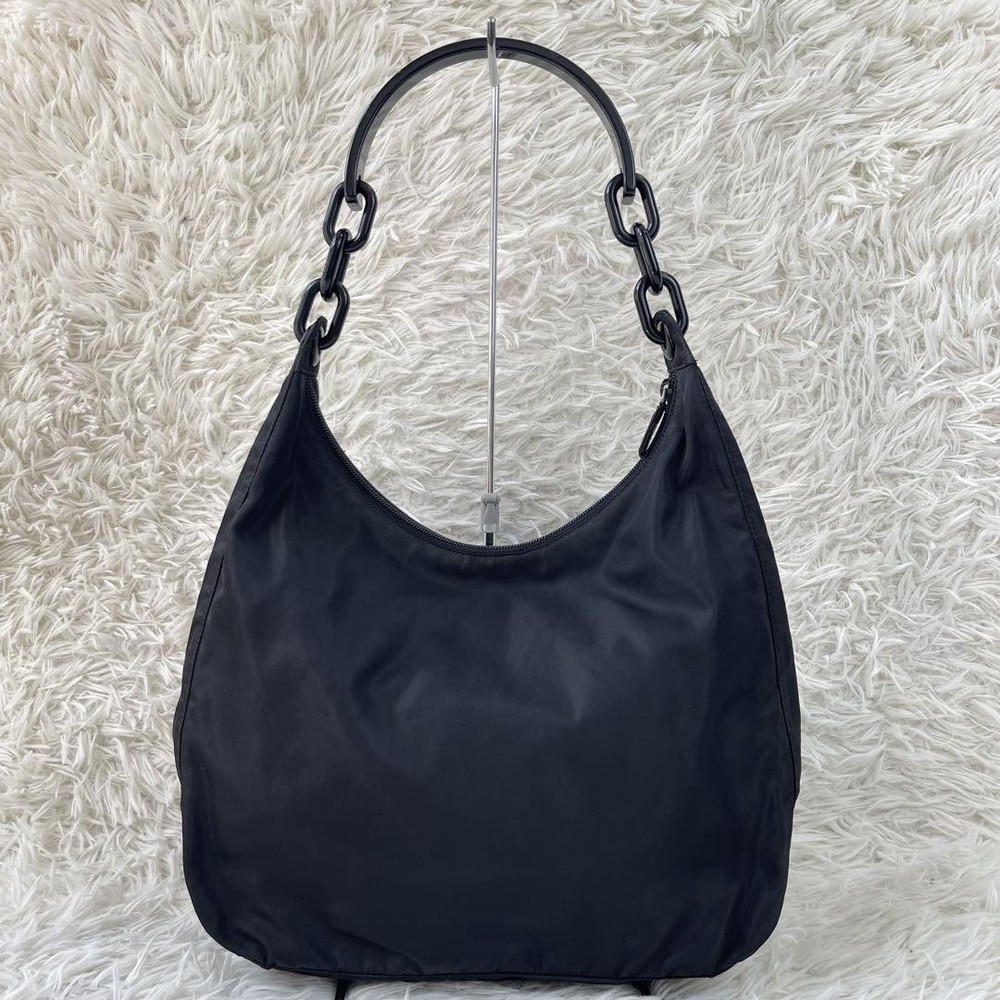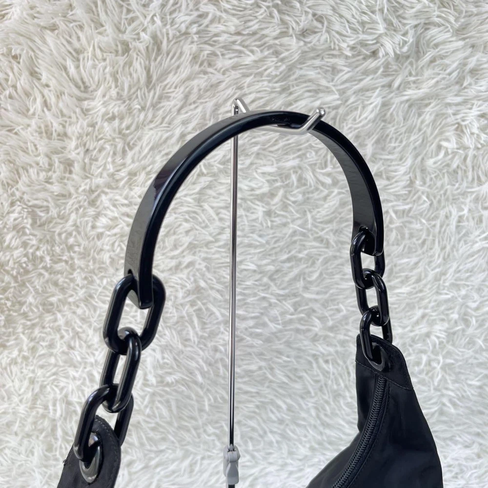 This Prada one-shoulder bag is a stunning statement piece! The black plastic chain gives it a sleek, edgy look while staying lightweight and comfortable. Even though it’s pre-owned, the condition is fantastic—just minor wear that adds character. The craftsmanship is top-notch, and the design is so versatile—perfect for nights out or elevating a casual outfit. Shipping from Japan was smooth, and the seller was super responsive. Absolutely love it!