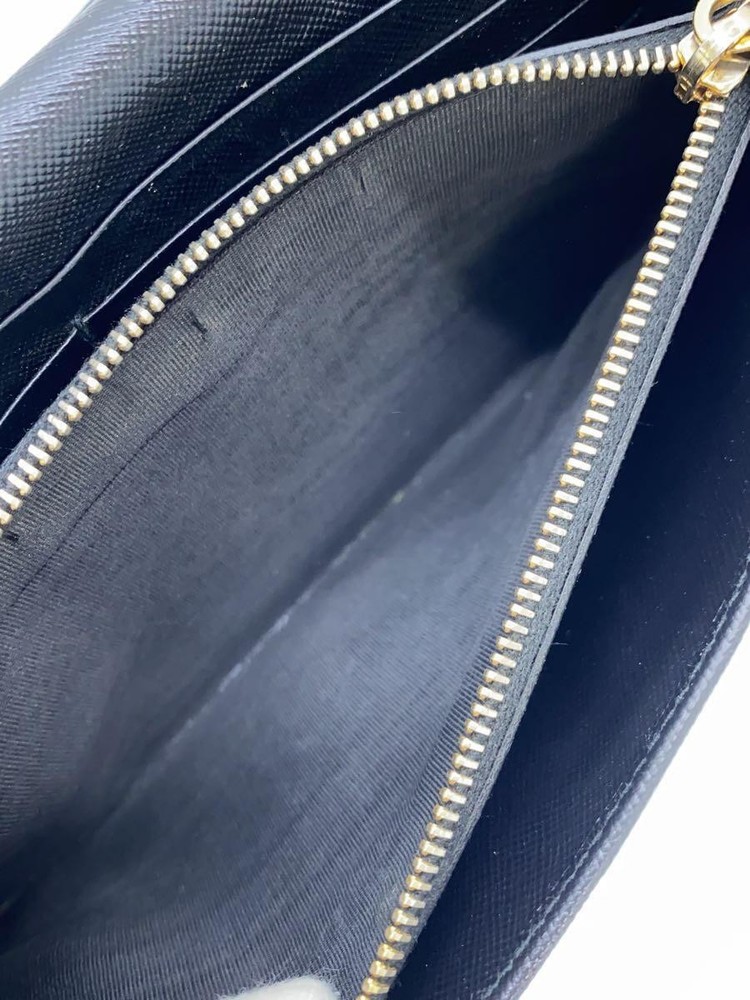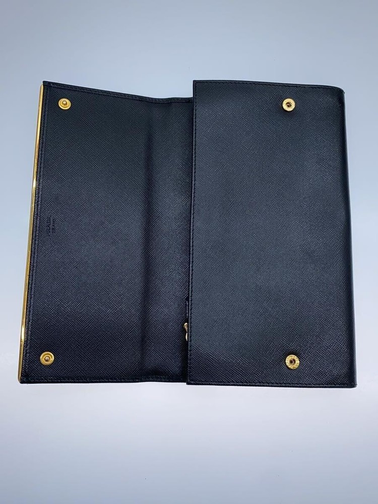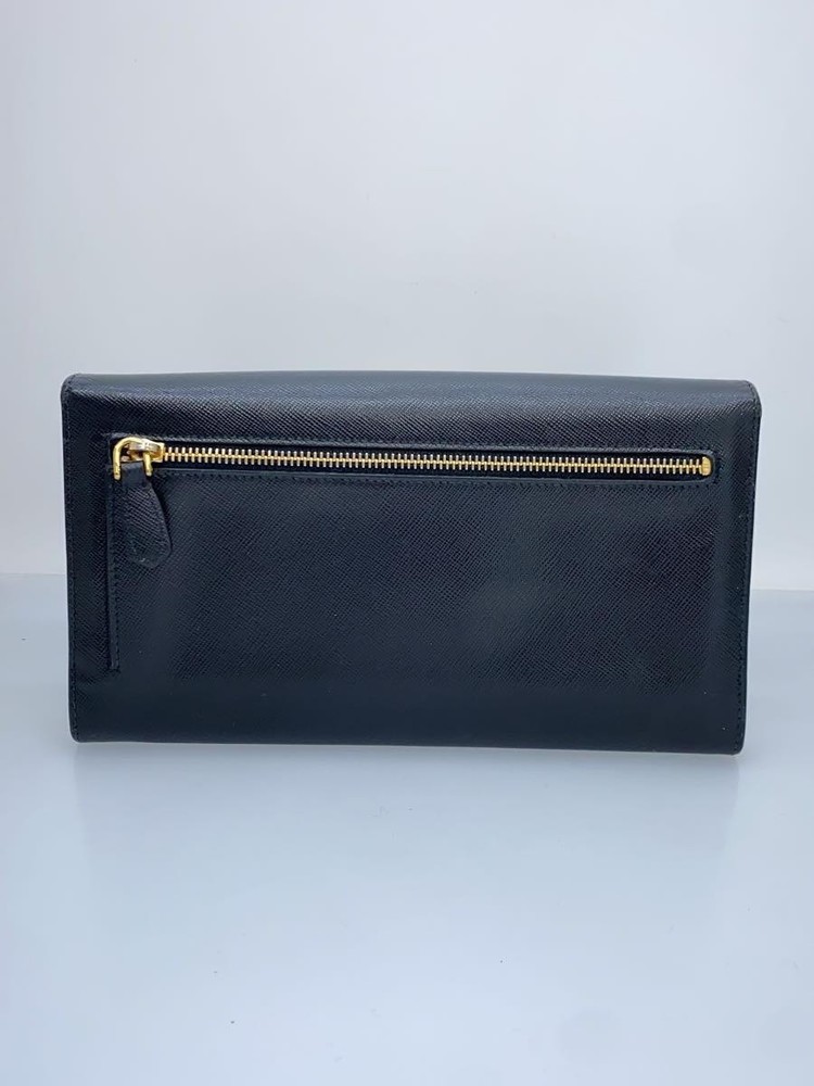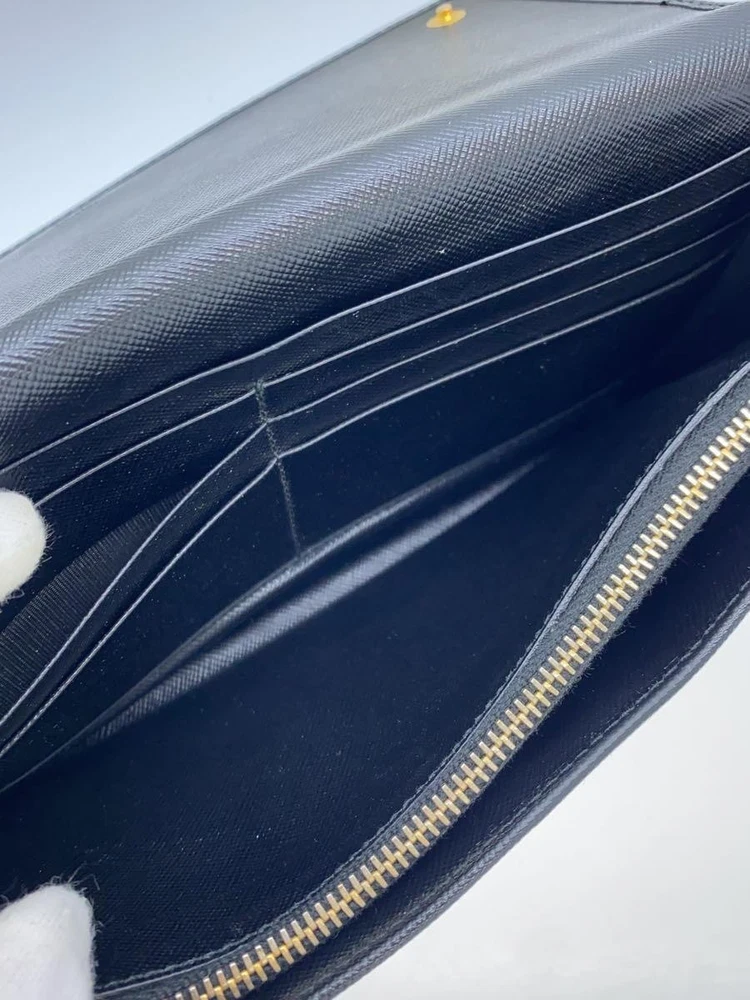 PRADA Flap Long Wallet Leather Black Ladies Metal Coating Peeling