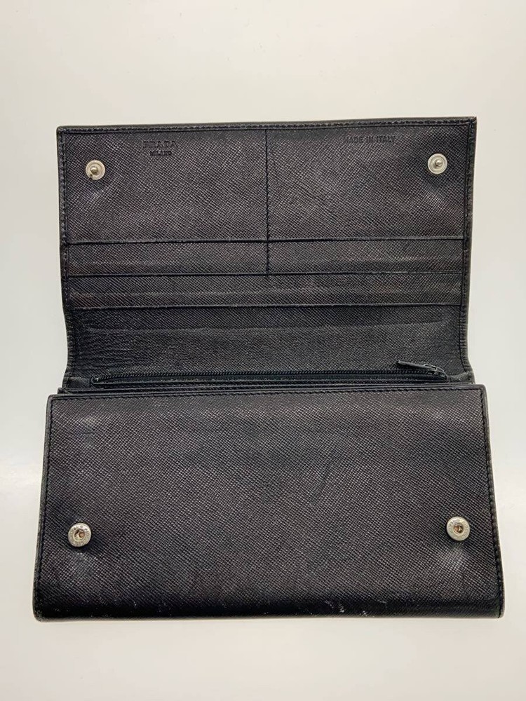 PRADA Folded Wallet Leather Black Plain Women s M608A
