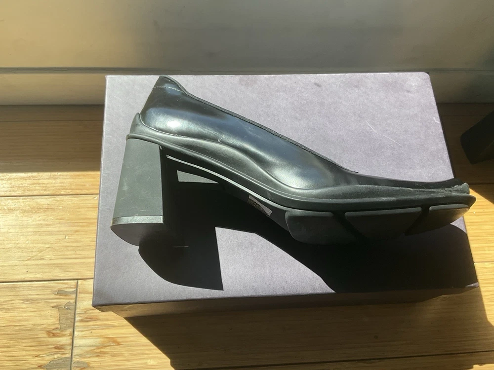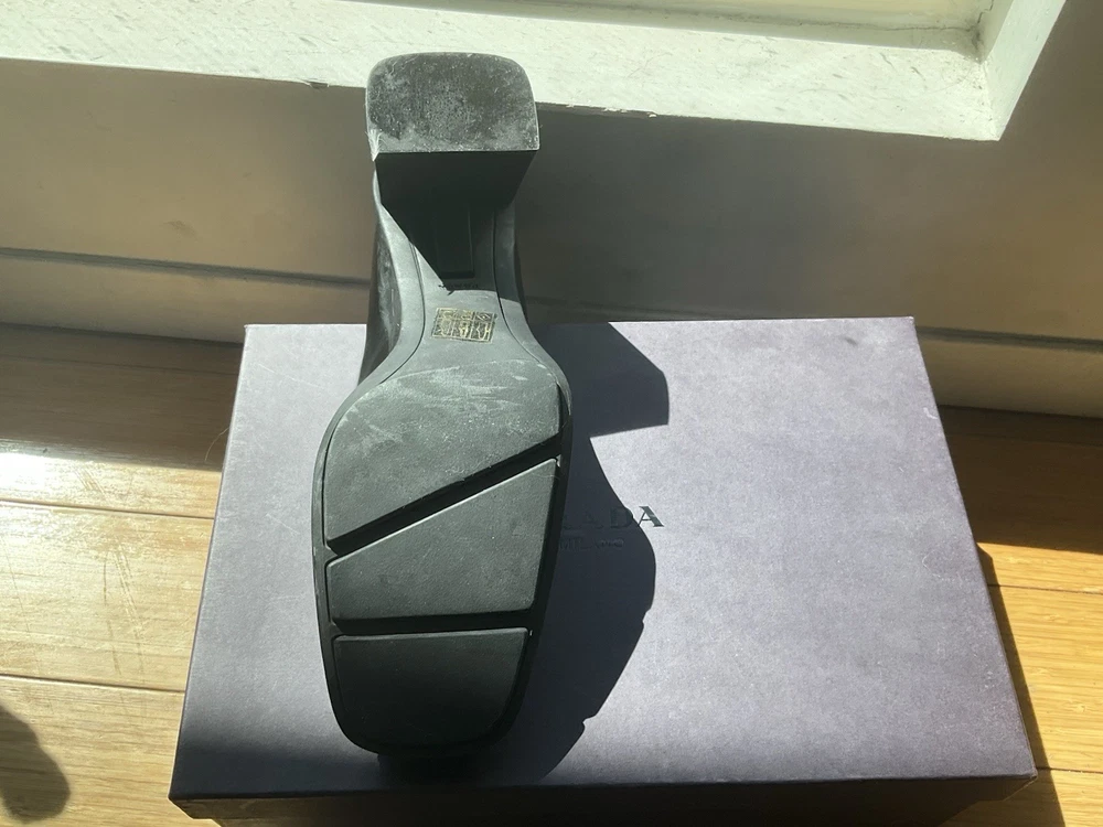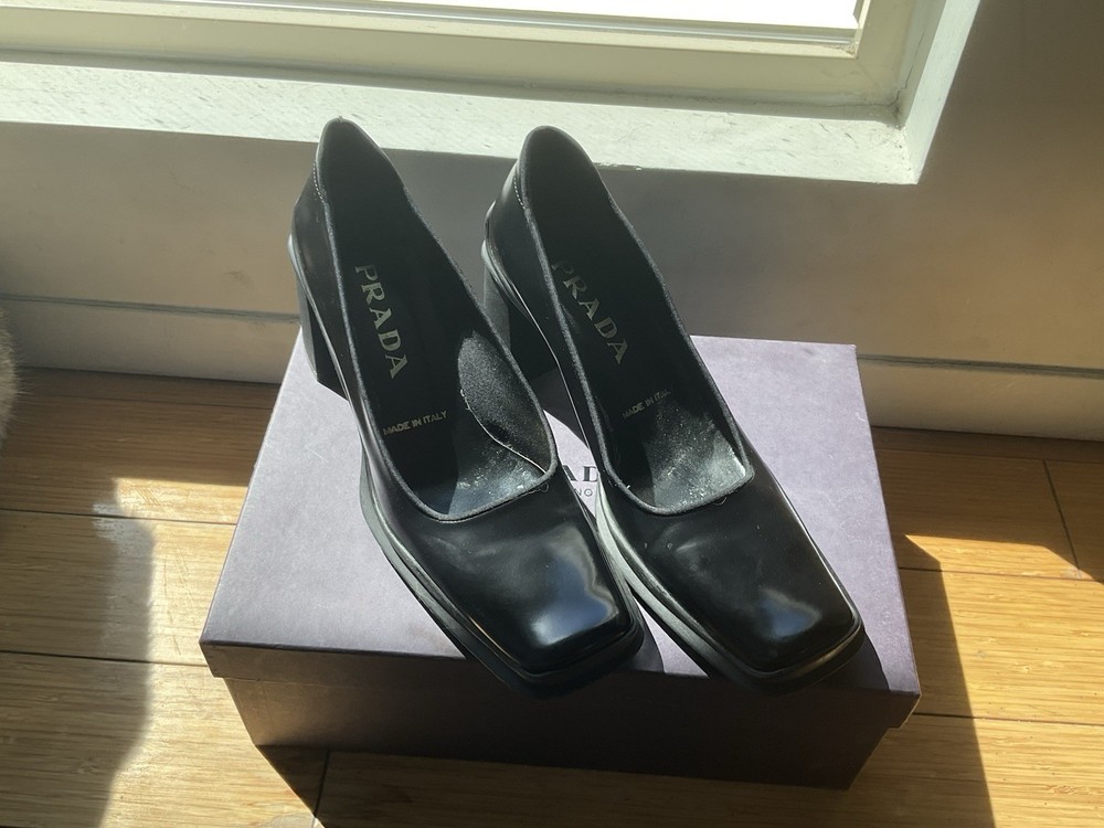 Here’s your polished listing for the Prada black leather heel: ⸻ These authentic Prada black leather heels are elegant, timeless, and in great condition—worn only once. Made in Italy and purchased in Rome for $800, they feature a classic closed toe and a sleek 3-inch heel that’s perfect for both work and dressy occasions. • Brand: Prada • Color: Black • Material: Leather • Size: 37 EU • Heel Height: Approximately 3 inches • Condition: Excellent, worn once • Comes with original box • Retail: $800 • Now selling for $339 — that’s over $400 off! I’m letting go of all my designer heels after foot surgery—they no longer fit my lifestyle. Be sure to check out my shop for more luxury steals! Feel free to DM me with any questions!