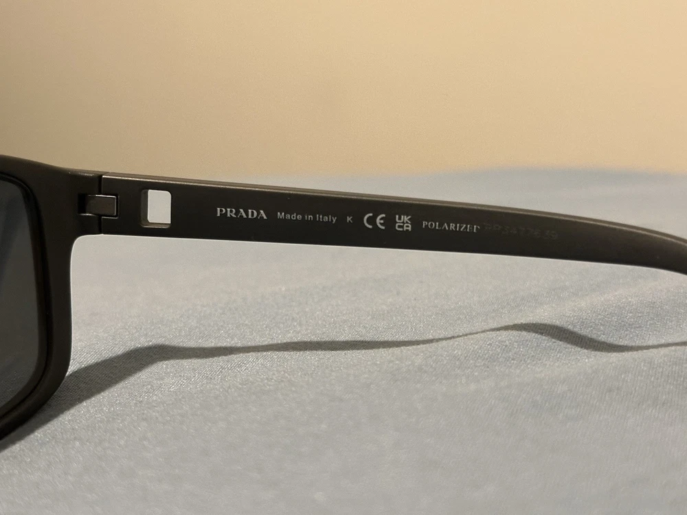 Pattern: Solid Type: Sunglasses Style: Round Frame Color: Gray Temple Length: 145 mm Brand: PRADA Personalized: No Frame Material: Plastic Lens Technology: Polarized UV Protection: UV400 Department: Men Vintage: No Lens Material: Polycarbonate Country of Origin: Italy Lens Color: Gray