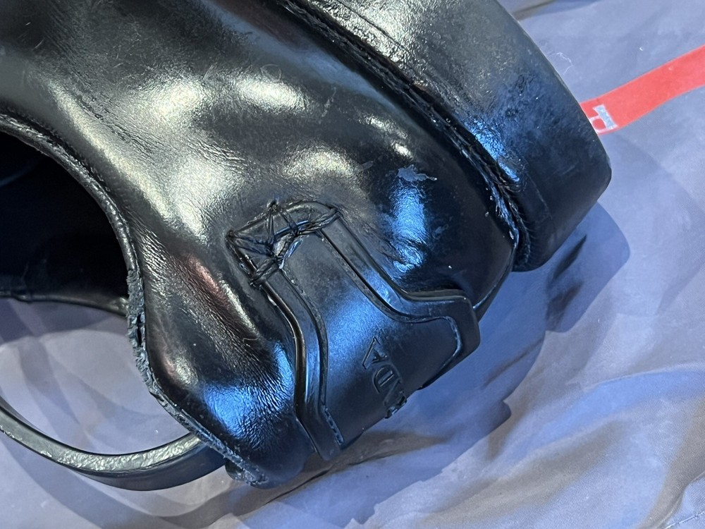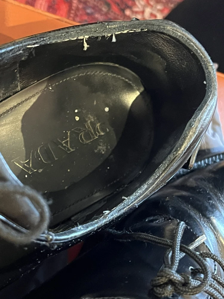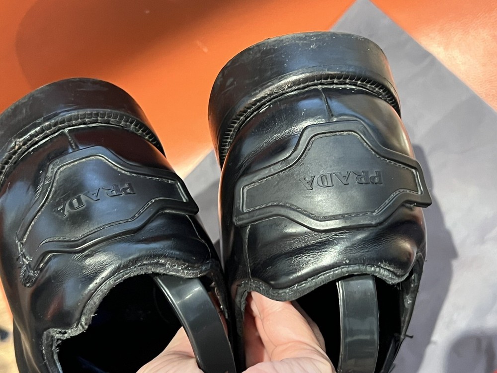 Heavily used and repaired men shoes- please refer to photos. Still have some life left. Priced accordingly. PRADA MODEL 2EE295 GROUP NAME SPAZZOLATO ROIS - made of real calfskin - rubber-sole - high-quality, spazzolato-leather