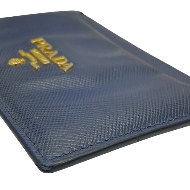 PRADA Navy Leather Compact Logo Business Card Holder Case 1M0208