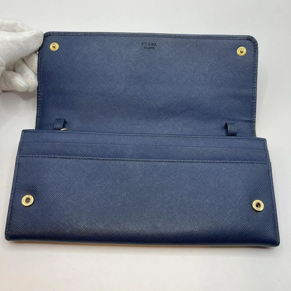 PRADA Saffiano Leather Long Wallet with Hook in Navy for Women Stylish & Trendy