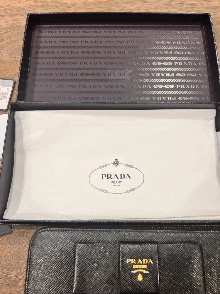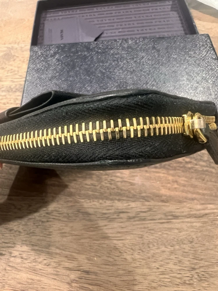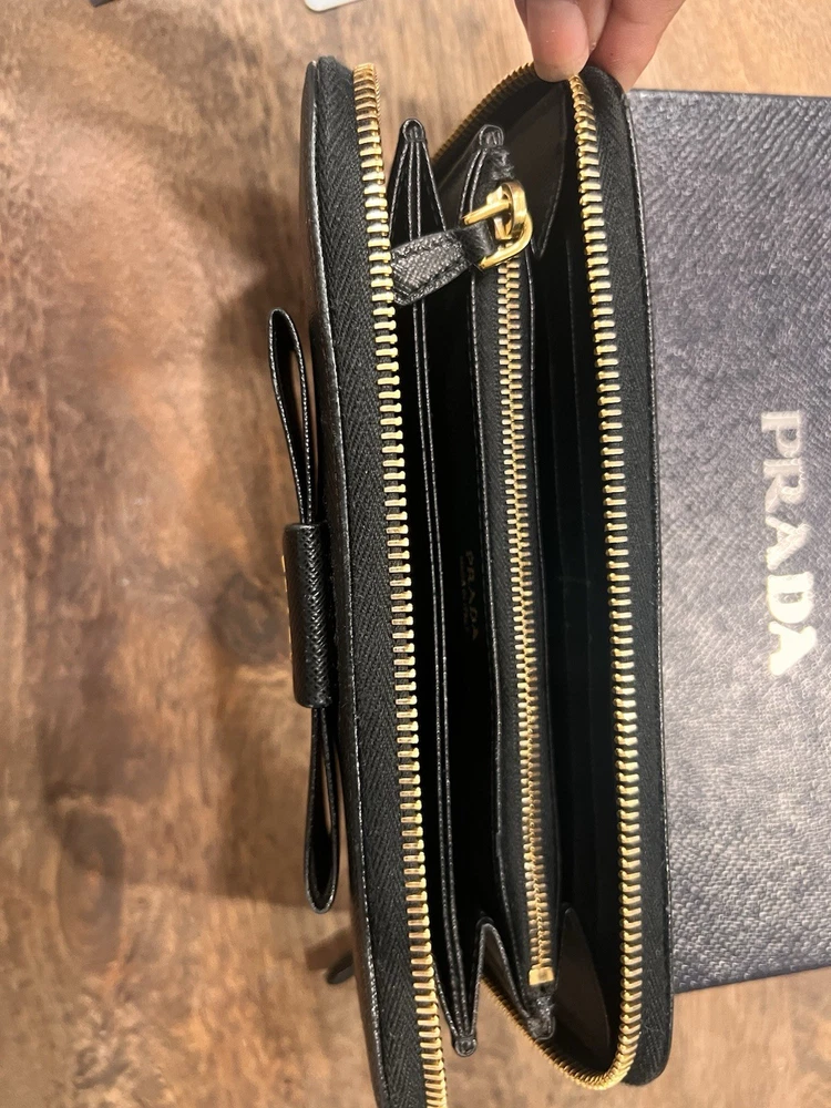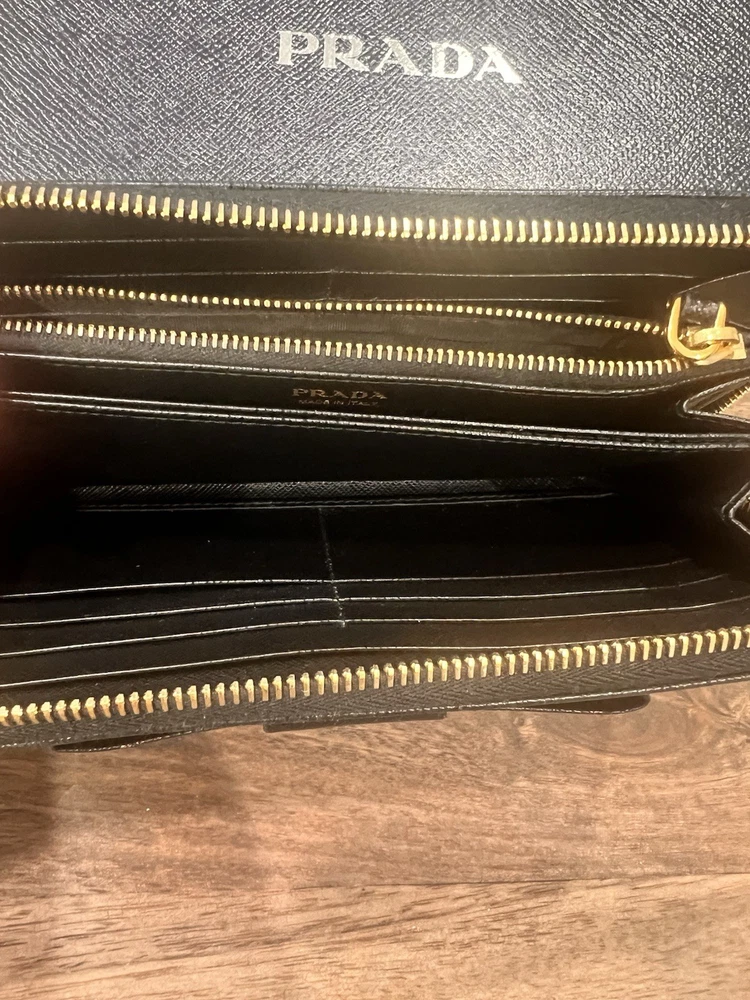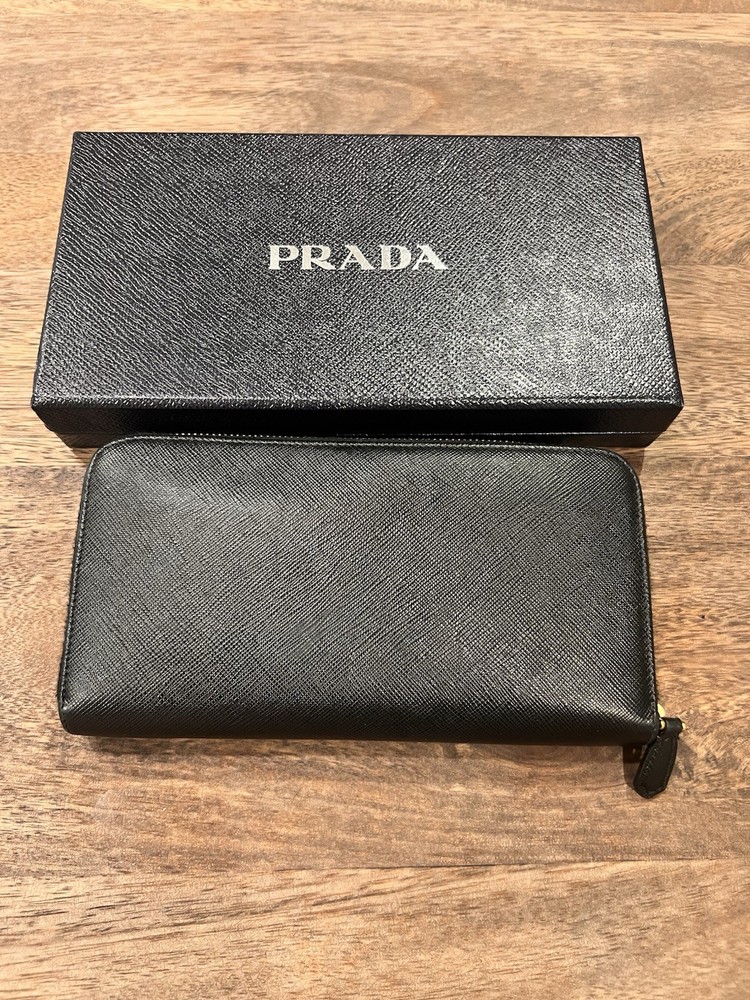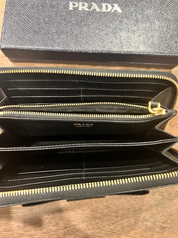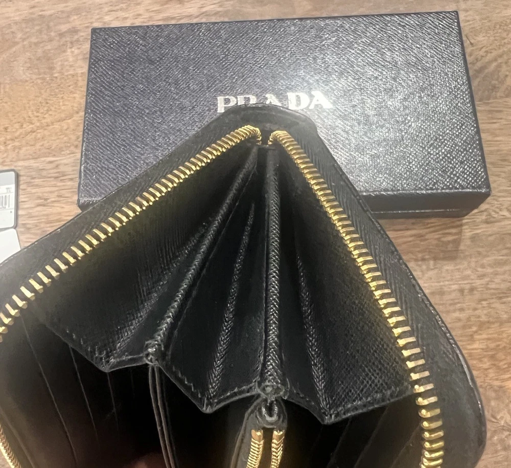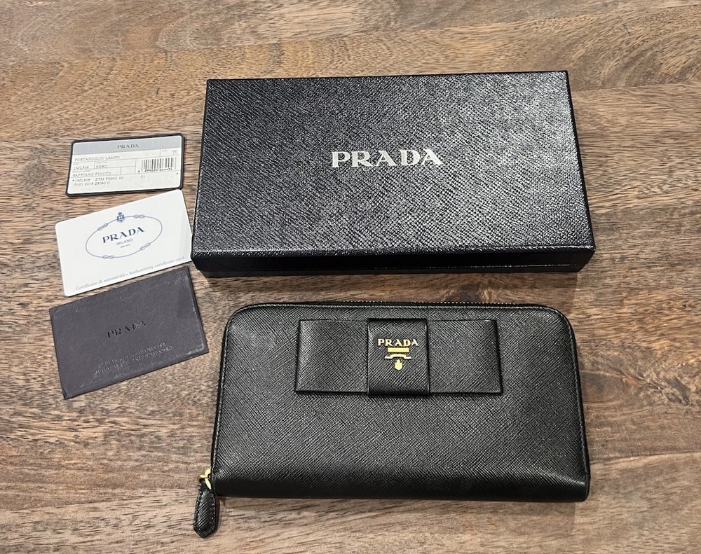 PRADA Saffiano Ribbon Leather Zip Around Long Wallet Black -Excellent preowned condition -very minimal wear on hardware -comes with box & COA