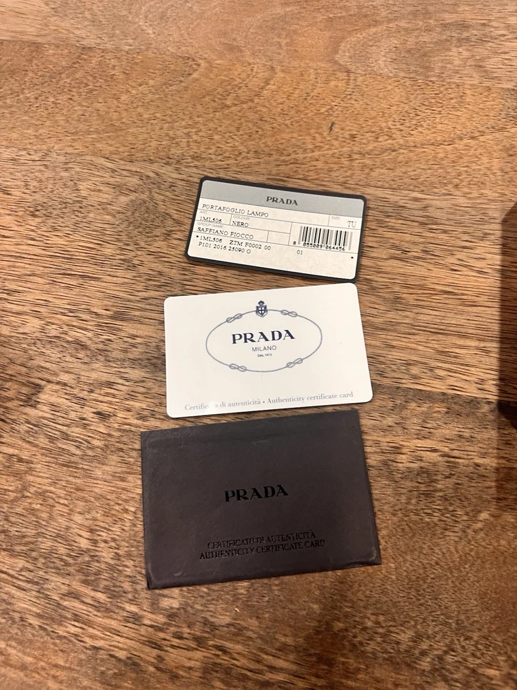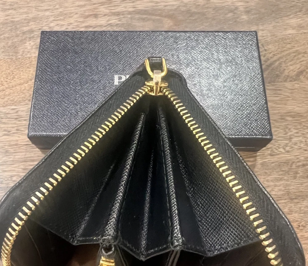 $ 259.89Prada Black Saffiano Leather Trifold Wallet with Logo