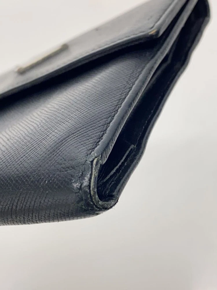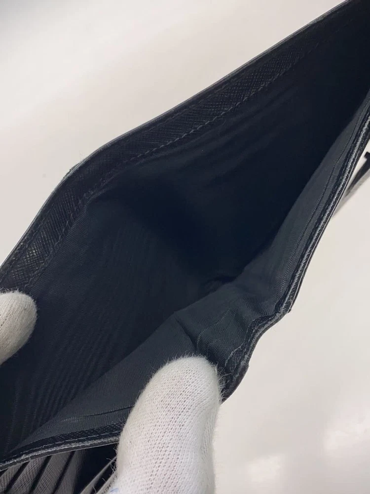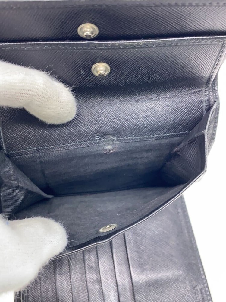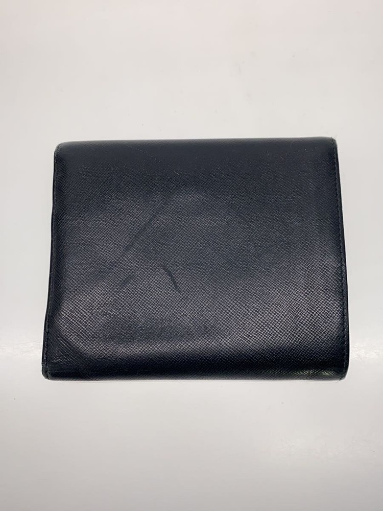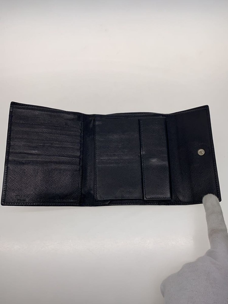 PRADA Trifold Wallet Leather BLK Solid Womens