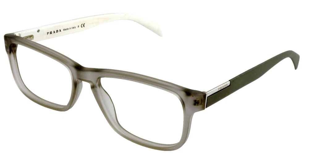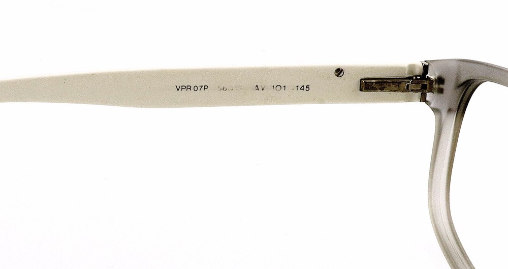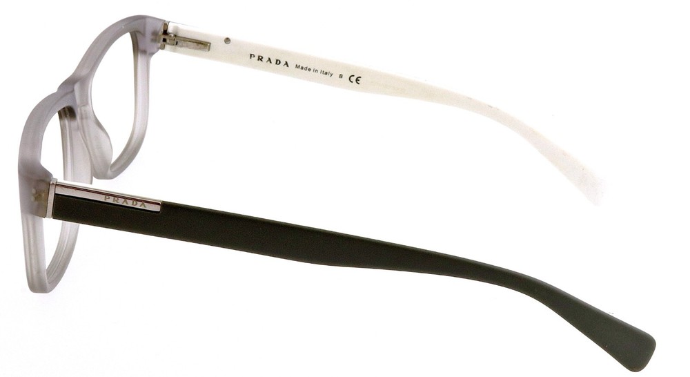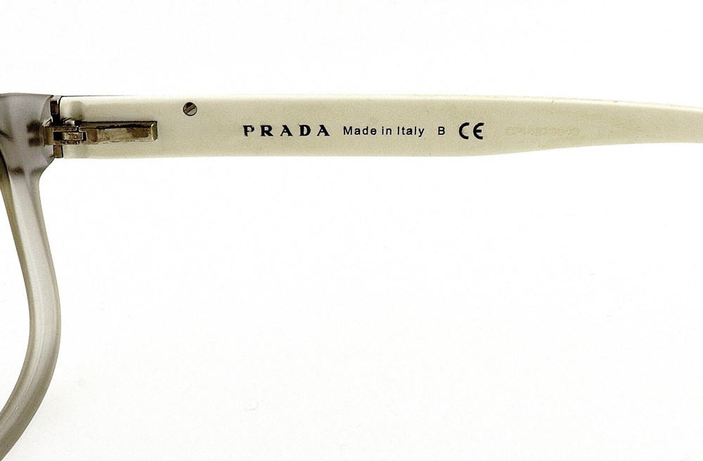 PRADA Model: VPR07P 5AV-1O1 Size: 56mm 56-17-145 Frame Color: Frosted Smoke Gray Translucent, White Frame Material: Acetate Made in Italy frames only no demo lenses, nice condition no issues