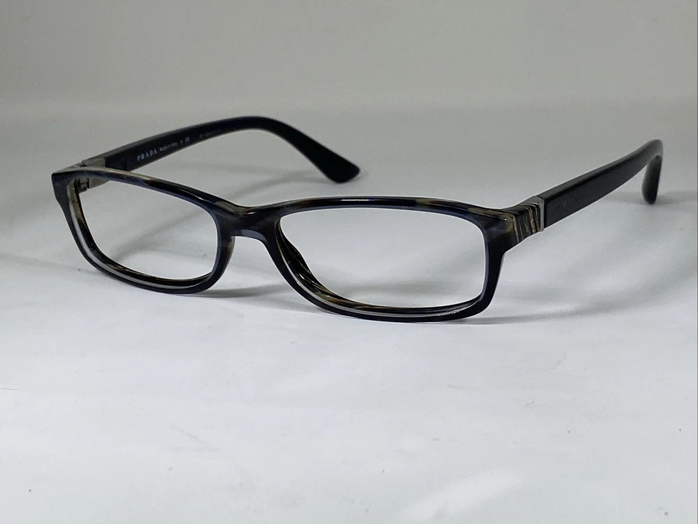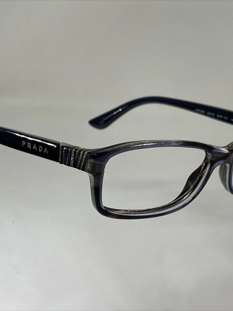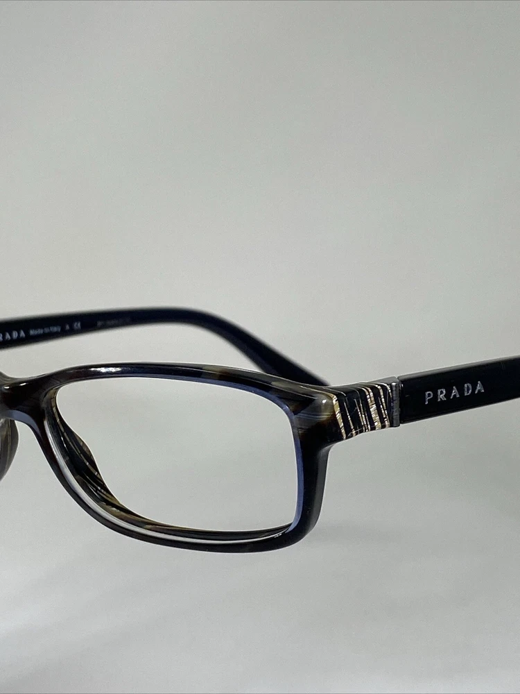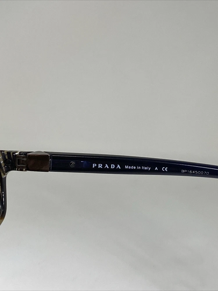 PRADA VPR09O EAR-1O1 Italy Blue Crystal/Beige Eyeglasses Frame 55-16-140. FOR FRAME ONLY Shipping : Your item will be shipped through USPS First Class Mail on us Once you pay for your item it will be immediately packaged and ready for shipment (1 day handling) Note : USPS FIRST CLASS Typically takes about 3 days for delivery. Title : In the title you will find the brand name, model, measurements for the width of the lens, nose bridge and temple arm length, country of manufacturer, followed by the color Not included : Again we sell for frame only and your purchase will not include a case or lens cloth. We sell lightly used frames. Authenticity and condition : All items we sell are 100% authentic. If you have any questions or concerns, please contact before purchase. We try to show the frame from all angles to remain as transparent as possible :) Note : Eyeglasses are sold for frame only, and lenses on your pair are recommended to be removed by professionals to avoid damage to your item. If you do however notice a frame missing lenses in pictures please know they're packed with frame and only removed (or had been by manufacturer) for picture reasons :) Returns : You will have 30 days to return your item and will receive a full refund once your item is confirmed to be delivered back to us. Item must be the same item you purchased and in same condition received to be issued a full refund. We look forward to and appreciate positive feedback. Customer care is our number one priority, so please contact us if you have any questions or concerns about your item.