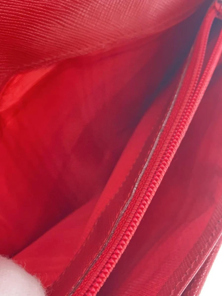 This Prada wallet is absolutely stunning! The rich red leather is luxurious and eye-catching, with perfect craftsmanship. It's spacious yet sleek, fitting all my cards and cash without feeling bulky. The quality is top-notch, and it feels so elegant in my hands. Shipping was smooth, and the seller provided clear info on duties. A must-have for any fashion lover!