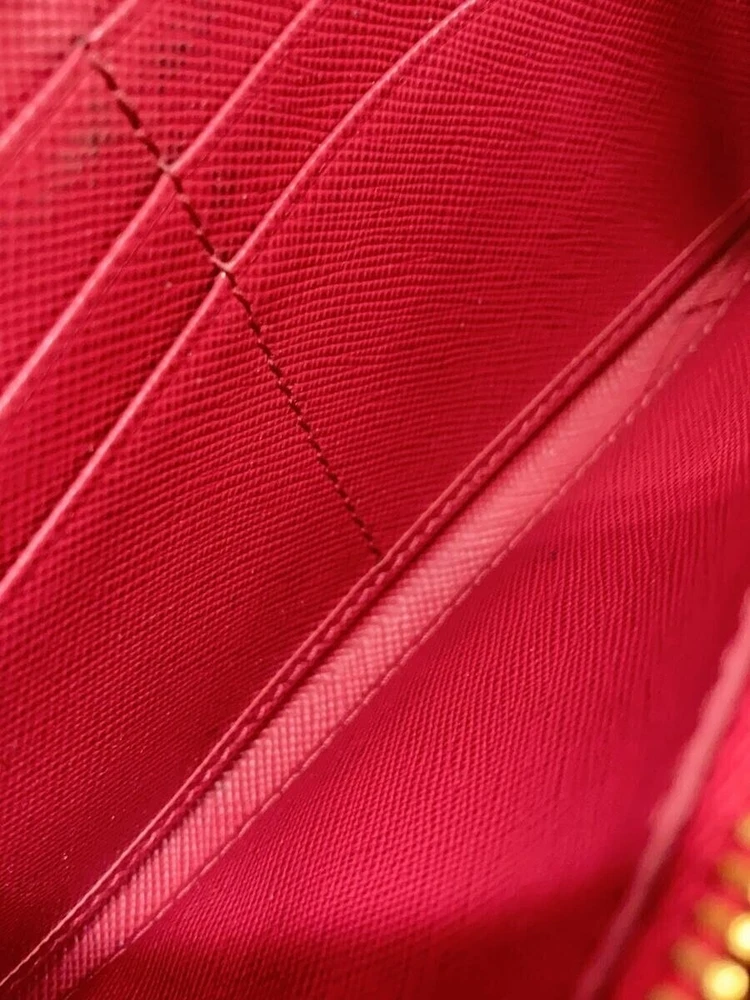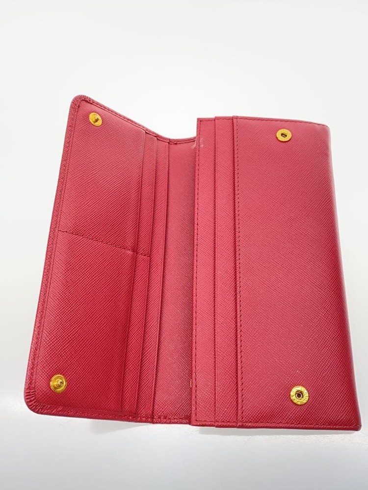 This Prada long wallet in pink is absolutely stunning! The sleek, minimalist design is so elegant, and the quality is top-notch—soft leather with perfect stitching. It fits all my cards and cash comfortably while still being compact. The color is a beautiful soft pink that adds a chic touch to any outfit. Shipping from Japan was smooth, and the seller provided great communication. Definitely worth every penny—such a luxurious addition to my collection!