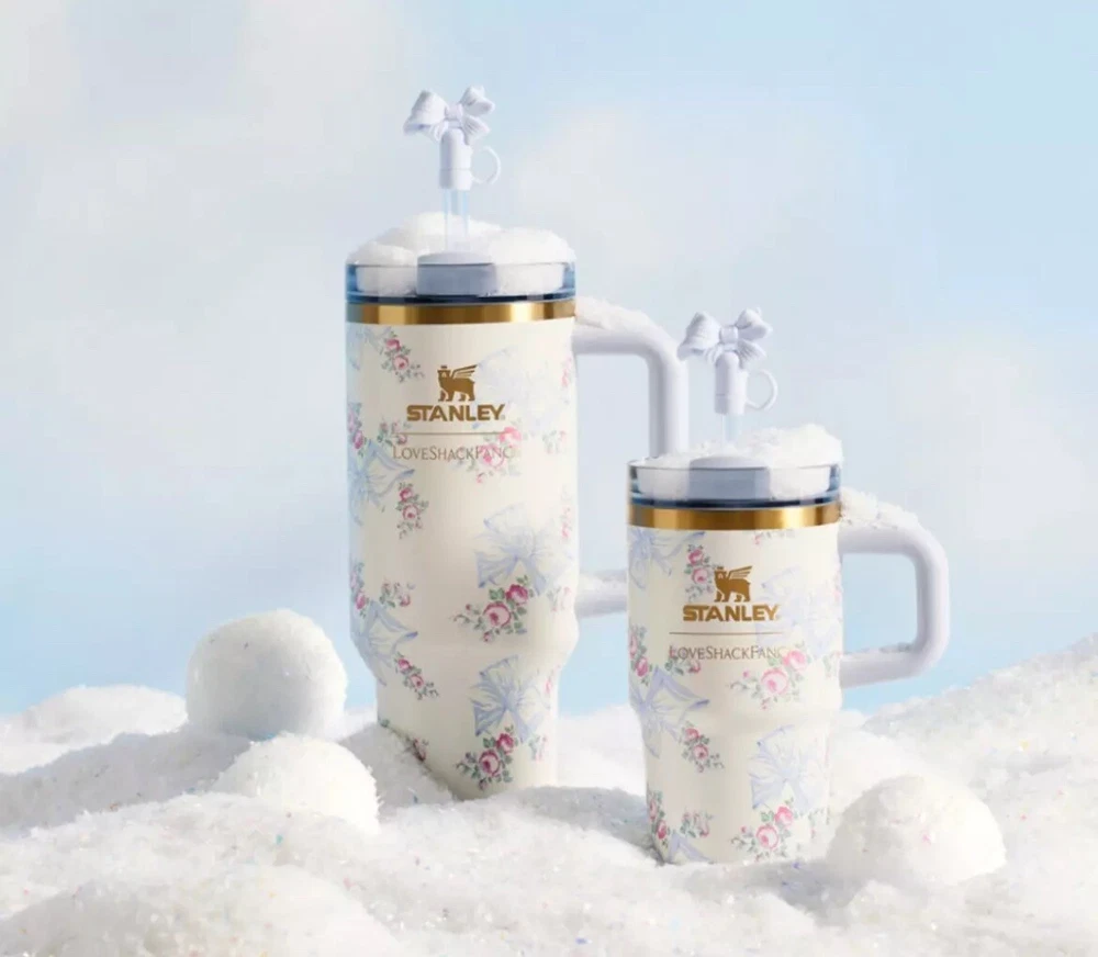 Introducing the limited edition Stanley x LoveShackFancy Quencher 40oz Rosa Beaux tumbler. This tumbler is perfect for keeping your hot or cold beverages at the perfect temperature for up to 12 hours. The stainless steel and BPA-free plastic material ensures your drinks stay safe and clean. With a capacity of 40oz, this tumbler is perfect for your daily commute or outdoor adventures. The tumbler comes with a handle, lid, and straw for easy sipping. The solid color pattern in blue adds a touch of style to your drinkware collection. This tumbler is a must-have for Halloween or any food and drink-themed occasion. Shipping as soon as I get my hands on it !