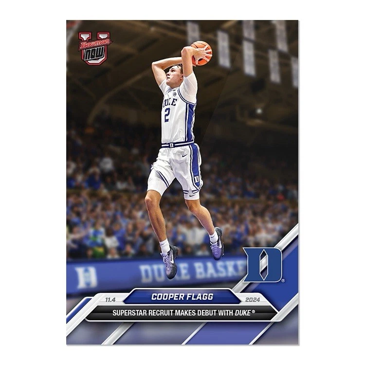 This is a rare and highly sought-after Cooper Flagg #1 Duke 2024-25 Bowman U Now Sealed Magnetic One Touch sports trading card. It features the talented basketball player in his rookie season with the Duke Blue Devils. The card is manufactured by Bowman and is part of the 2024 Bowman set. This trading card is perfect for any sports fan or collector looking to add a valuable piece to their collection. It comes with a magnetic one-touch feature and is still sealed in its original packaging. Don't miss out on this opportunity to own a piece of sports history.