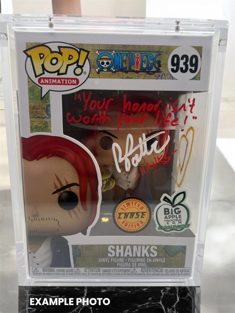 Pre Sale!! Not for Big Apple Chase. SE Chase Welcome, guys! We’re offering another PRE SALE. The signing is on December 14th, 2024. Here’s your chance to be the first to get the custom Pop! of your choice. You can choose a QUOTE of 6 words or less in any color you want. Additionally, you can select a different color for the AUTO. Enjoy the convenience of attending the signing without incurring travel or additional expenses. PRE SALES confirm your item and give you the power to pick and choose what you want! Items come with an AUTO, QUOTE, and Certification all included. - Choice of color for QUOTE - Choice of color for AUTO PLEASE ASK ABOUT: Additional requests come with a fee: - Quotes longer than 6 words are an additional $20 to the listed price. - Voice Actor Art starts at $20-$30 additional to the listed price. Please contact us before your purchase if you would like ART or if your QUOTE exceeds the 6-word limit.