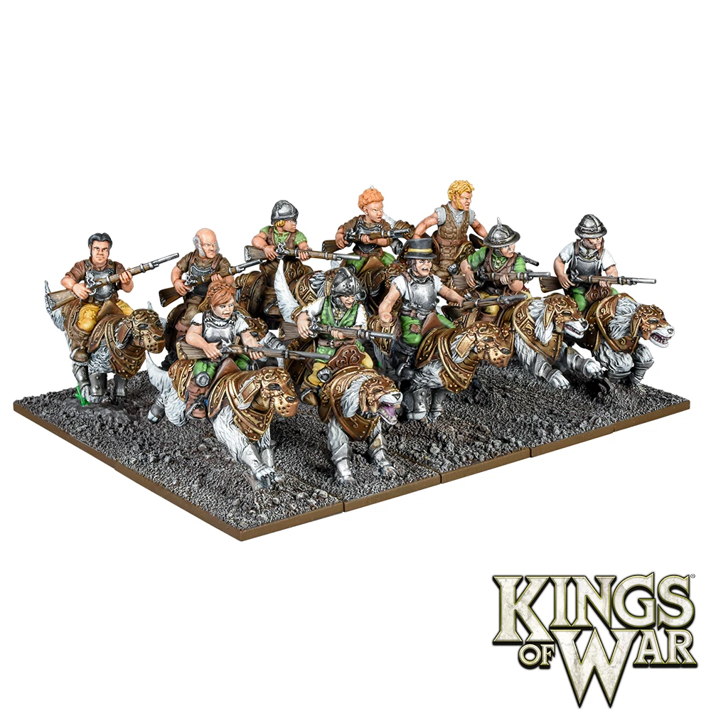 PRESALE Halfling Army Kings of War Mantic Hobbits League of Rhordia Fantasy THG BACKORDER This product is a presale. Presale items are not currently in stock but are on order with the supplier, or in some cases will be ordered to fulfill your purchase. Presale items are provided for sale for your convenience and to benefit from promotions that we may run from time to time. We typically place restock orders at the beginning of every week, with orders shipping to us usually later that week, thus these items usually arrive within 1-2 weeks. Please note, however, that given the current state of logistics and supply, our restock order could be pushed back or delayed. DESCRIPTION The Halflings have split from the League of Rhordia. While relations have been rebuilt, the Shirefolk are now responsible for their own defence and have organised their army under the expert eye of Aeron Cadwallader, their greatest modern hero. Combining their engineering talents with their skills in archery and poaching, the trained bands of professional soldiers and their support units pose an unexpected and formidable barrier to any who threaten the peace of the Shires. CONTENTS - 40 Halfling Infantry - 20 Halfling Cavalry - 1 Harvester - 1 Sauceror on Aralez -