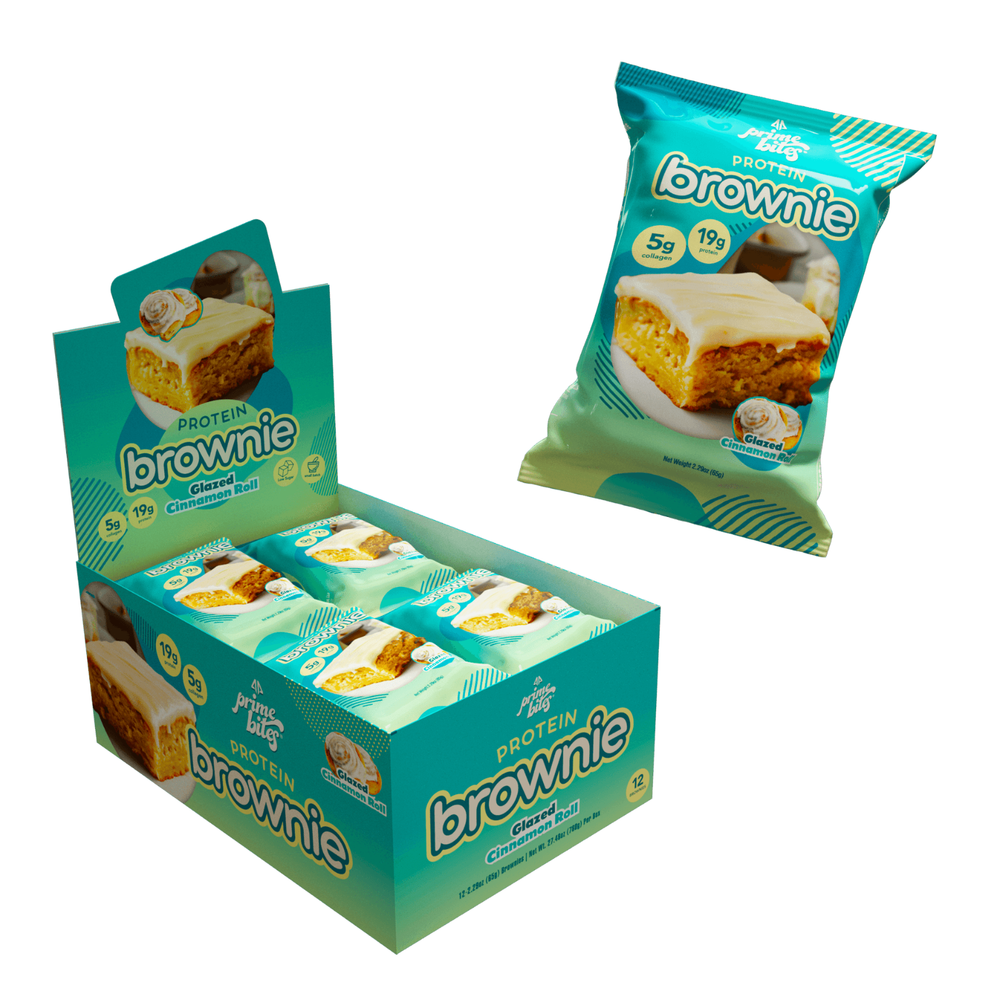 Your favorite childhood brownie that you can enjoy as an adult. Perfectly moist and deliciously chocolately, it's everything you could wish for in a classic brownie and more. Overview We're on a mission to prove that delicious CAN be nutritious. We all love the snacks we used to eat as children - but we don’t love how they make us feel. Prime Bites were born when we noticed a lack of protein snacks on the market that actually tasted like the real thing. Prime Bites are packed with 19g of high-quality whey protein, 5g of collagen, and (most importantly) a taste that is indistinguishable from your favorite desserts. So take a bite and relax, knowing that delicious can be nutritious. Benefits 16 to 19 grams of Premium Protein Fortified with Premium Collagen Individually wrapped brownies for on-the-go use