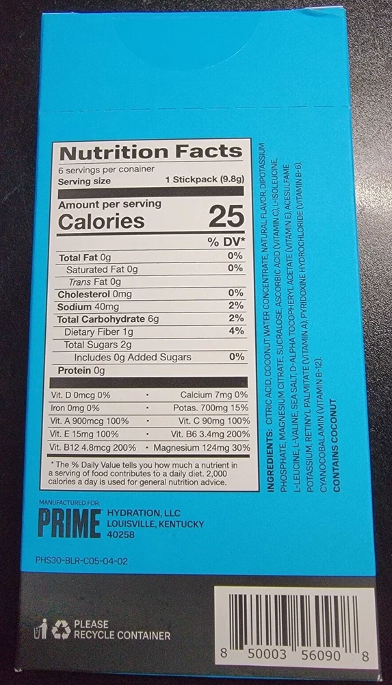 PRIME HYDRATION 6 STICKS Blue Raspberry ONE BOX ELECTROLYTE DRINK MIX One Box BRAND Prime CONDITION New! SHIPP ING FREE Flat rate Continental U.S. ALASKA, HAWAII, & PUERTO RICO SHIPPING IS HIGHER. PLEASE CONTACT ME FOR EXACT COST! Your Item is shipped within 24 to 48 Hours after your payment has been received, The shipping cost shown above is a flat rate, and I reserve the right to select the most practical and cost efficient shipping method*. * IF YOU NEED YOUR ITEM FASTER, PLEASE SELECT THE PRIORITY SHIPPING METHOD. POLICY I will do my utmost to make your purchase as pleasurable as possible. If you are not pleased with your item, you may return it within 30 days for any reason as long as it meets the following conditions: 1. Clothing must not be worn and the tag must still be attached as received. 2. Games must be sealed, and unopened. 3. Boxed Items must also be still in the Original box as received. ADD ME TO YOUR FAVORITE SELLERS