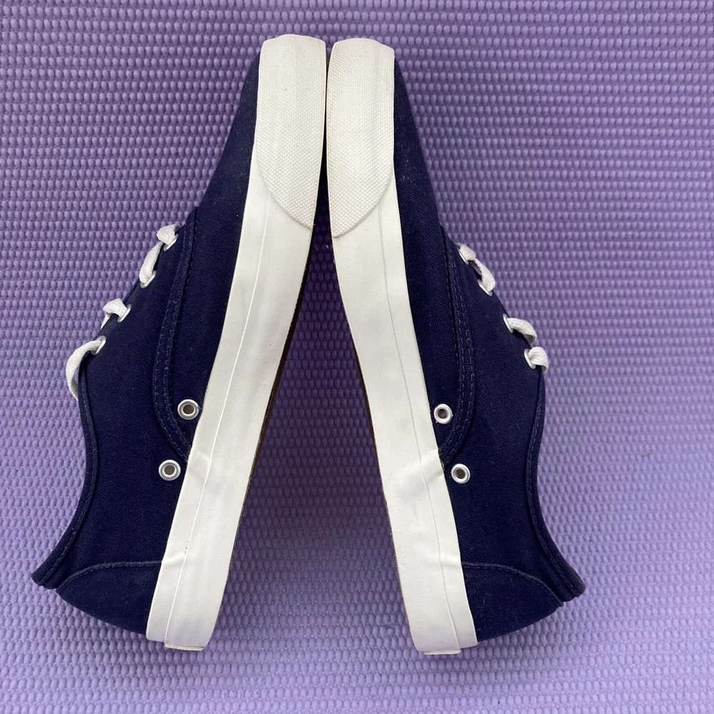These sneakers are a great find! The navy canvas looks clean and stylish, with just minor wear that adds character. Super comfortable and true to size—perfect for casual wear. The slight color difference from cleaning is barely noticeable. Love the vintage vibe!
