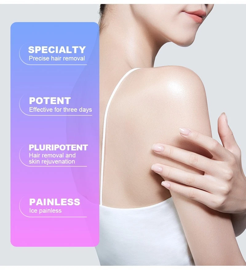 Feature 1: Permanent and painless hair removal Department: Men, Women Certification: CE,RoHS Nozzle type: Metal Body Area: Bikini, Body, Face, Legs Features: Portable Suitable For: Hair Removal Function: Fast hair removal Power Type: Electric Type: Laser Hair Removal Device Feature 2: Hair Removal Hair Type: Black, Blond, Brown, White Flash Life: 999999 Item Type: Epilator Power Source: Corded Electric Feature 3: Whitening Brand: Unbranded Feature 4: Skin Rejuvenation Number of Settings: 1 Country of Origin: China Epilator Type: Laser Warranty: 12 months