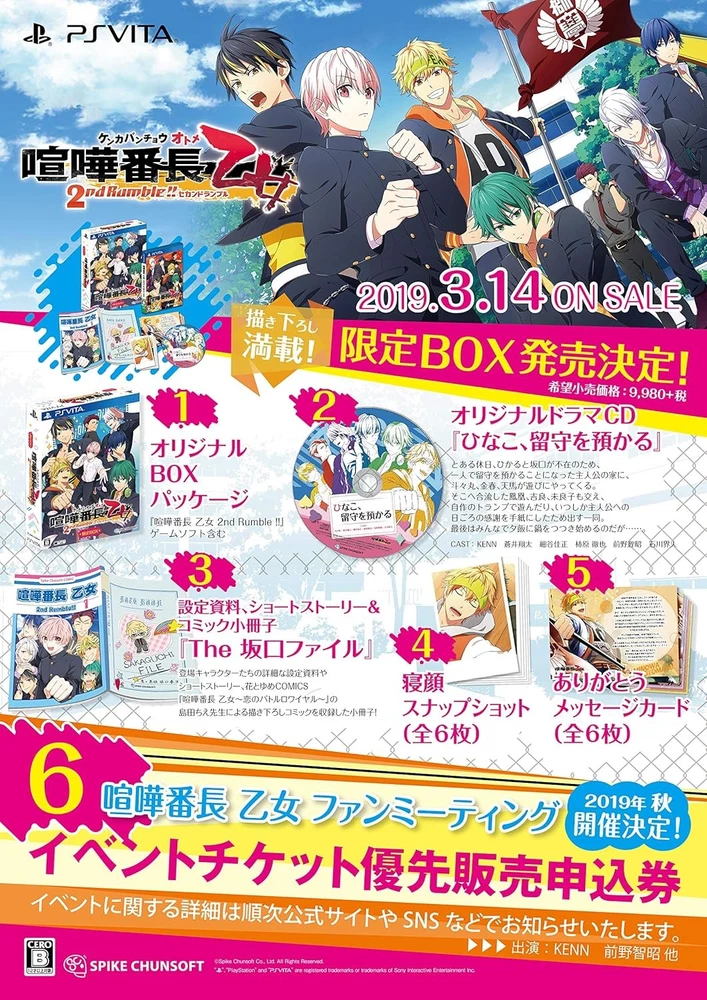 Thank you for visiting our page c18llgoz99Used.VeryGood Detail [PS Vita] Kenka Bancho Otome 2nd Rumble!! Limited BOX book form JP [ Condition ] Used.veryGood Model number: VLJS-08021 All products in our shop are in Japanese. The language is the Japanese version. [ Brand ] spike chun soft [ Release Date(yyyy/mm/dd) ] 2019-03-14 [ Note : Pre-Order (P/O) ] If title has "Pre-Order", we will ship out as soon as released. We want all buyers to understand there is possibility that the manufacturer will change contents, date and quantity for sale. [ Country of Manufacture ] If "Made in Japan" is NOT described on whole listing page, Items are manufactured in other country (China, Vietnam and etc.). [ Manual & Menu Language ] We treat Japanese Market Usage Items. So items have only Japanese Manual & Menu Language. Please contact us if you would like to know more details. *Japanese Menu Only : Panasonic Camera *English Menu available : Nikon, Canon [ Warranty ] Japanese Warranty Only. Buyers need to send item to us in Japan to repair with warranty & own all shipping cost. If you need to repair item in your country with warranty, please do not order this item. [ Electronics ] Japan Usage Item. Voltage:100V, Plug :Type A, FM Tune:70-90MHz Please check your country's condition for use. [ Multiple sizes and colors ] Before your payment, please contact us about stock of size & color. Payment [ International Buyers - Please Note ] - Import duties, taxes and charges are not included in the item price or shipping charges. These charges are the buyer's responsibility. -Customs and duties: For buyers in the United States: Import duties and taxes are included in the item price or shipping cost. Items shipped to the U.S. are sent under the Delivered Duty Paid (DDP) method, which means all import-related charges are prepaid. You don’t need to pay any additional fees when your order arrives. For buyers outside the United States: Import duties, taxes, and charges are not included in the item price or shipping cost. These charges are the buyer’s responsibility. Please check with your country’s customs office to determine what these additional costs will be before bidding or buying. - Please check with your country's customs office to determine what these additional costs will be prior to bidding/buying. - These charges are normally collected by the delivering freight (shipping) company or when you pick the item up. Please do not confuse them for additional shipping charges. Please pay within 3 days after your purchase. Shipping [ Method ] level country service name speed track number standard worldwide AIRMAIL about 2~3 weeks yes expedited worldwide DHL or FEDEX about 1 ~2week yes [ Shipping Address ] We ship to only address where be registered by ebay. If your address is in a remote area, you will need to pay an additional shipping fee. [ Other Carrier ] We can arrange shipment by DHL and fedex and jp post. Everything comes with a tracking number. We will send you a tracking number once we ship. Please ask us about Handling Time and Price. [ Combine shipping & Large Quantity ] Please contact us for combine shipping & large quantity deals before payment. We do our best for you!!!!! [ Order Processing & Handling Time ] Your order will be shipped within 5~7 business days (excluding Saturday, Sunday & Japan's Holiday) after the payment is confirmed. [ Compensation & Insurance] When you choose EMS, in order to receive compensation, it is necessary to open the box and check your item with delivery staff at the time of delivery. If you don't do that, you may not receive compensation and new item from us even if your item is damaged and lacked. [ Li-ion Battery ] Some countries( Germany,France,Italy,Mongolia,SriLanka,Turkey,Nigeria and more.) does not accept lithium battery via EMS, SAL by Post Office. Please check your country's rule yourself. If we receive order from buyer who located in these countries, we will ask buyer to choose 1 from 3. 1. Ship without Ri-ion Battery removed from item. 2. Change shipping method to Fedex or DHL with additional shipping cost. 3. Cancel