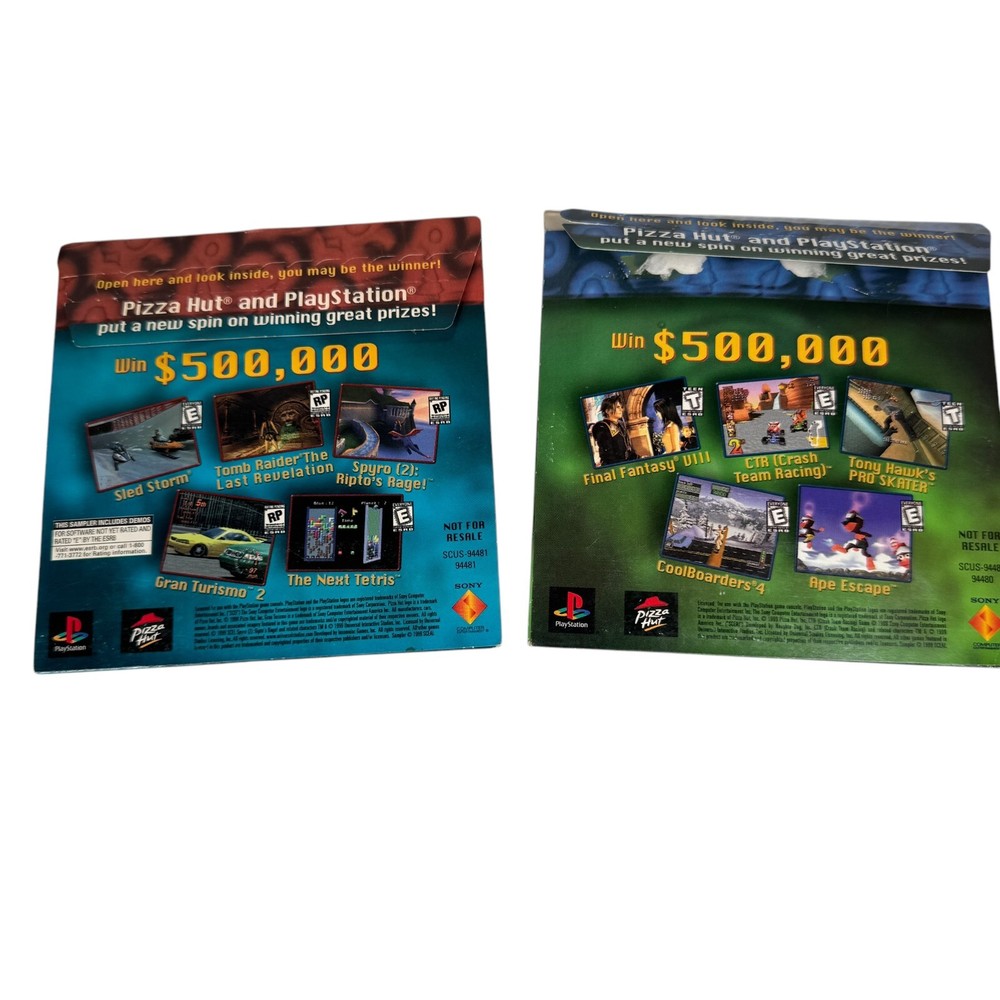 This lot of 12 demo discs includes a great selection of game previews for PS1 and PS2. It has Pizza Hut demo discs, a PS2 magazine disc, Playstation magazine disc, Jade cocoon and more. The discs all have some scratches, which are previewed in the 3rd photo. Sold as is.