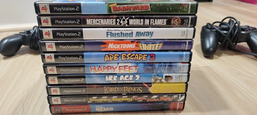 Selling my old ps2 with a bunch of games. Has some scratches on the top gloss. Comes with knock off controllers and all of the cables.