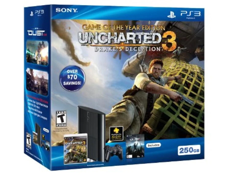 Title: PS3 250GB Uncharted 3 Console Bundle Photo: Please see item notes for details. ISBN / UPC: 711719991069 Internal Product Sku: ZZ669911 Item Type: Video Game Systems Location: #ZZZ Bundle #T31 250GB Condition: Used: Very Good Condition: Used Very Good Brand: Sony Model: PlayStation 3 - Super Slim Platform: Sony PlayStation 3 Color: Black Region Code: NTSC-U/C (US/Canada) Type: Home Console Storage Capacity: 250 GB Connectivity: HDMI MPN: 99106 Country/Region of Manufacture: China Details about the item: Includes HDMI Cable, Power Cable, One Controller, 250GB, Game: Uncharted 3, and System. Very Good Condition PS3 250GB Bundle. No Original Box Included. Our small business sells new and used items. We take great pride in our service and strive to make every shopping experience great. If you have any issues please contact us. Bulk Purchase: If you are interested in buying in bulk please contact us. We are able to provide invoices and discounts on large purchases. Product Information: Please take notice of the seller notes detailed on the listing page. Do not assume an item has something included if it is not mentioned in the notes section. Most photos are stock photos and do not depict the actual item, so please take a moment to read the description that is in yellow. We will be happy to respond quickly via email to any questions you have about an item, so feel free to drop us a line. We classify items in these categories: Brand New items are unused and factory new. Refurbished items processed to ensure they meet original manufacturer specifications. Like New items have very minor wear, if any. Very Good items are well cared for but will have light wear and tear from normal use. Good items show wear from use, but remain fully functional. They may be marked, or have identifying markings on it, or show other signs of previous use. Acceptable items are fairly worn but continue to work with full functionality. Signs of wear can include aesthetic issues such as scratches, and discoloration. Used Media items will not have DLC Add-On codes. We also do not sell any PAL items, meaning our items will only work in NTSC video equipment. Store Hours And Support: We are open Monday through Friday, 9:00AM-5:00PM EST. We are closed Saturday, Sunday, and all major holidays. If you contact us after store hours, we'll reply on the next business day.. Domestic Shipping Policy: We generally ship items within one business day (Continental USA Standard shipping starts at $0.00 and Domestic USPS Priority Mail starts at $2.99). For select items we offer 2 day shipping which starts at 11.99 and one day shipping which starts at 18.99. Larger items will be shipped via FedEx. If the item is purchased during the weekend or on a holiday, it will be shipped next business day. We cannot ship to APO addresses, PO Boxes, US Protectorates, Hawaii or Alaska. Itembazaar in most cases does not charge a restocking fee for returns. However in situations where the return is related to buyer remorse or an incorrect address we will withhold shipping expenses and processing costs. We ship from 18370 South Miles Rd Warrensville Hts, OH 44128 USA. International Shipping Policy: We offer the eBay Global shipping program which takes care of tracking and customs. The way it works is we ship it to the eBay processing center and they ship it to the country. Feedback Policy: We leave feedback right after payment. If there are any problems, please contact us, we will make it right. ***CHECK OUT OUR STORE FOR A HUGE SELECTION OF DEALS!***