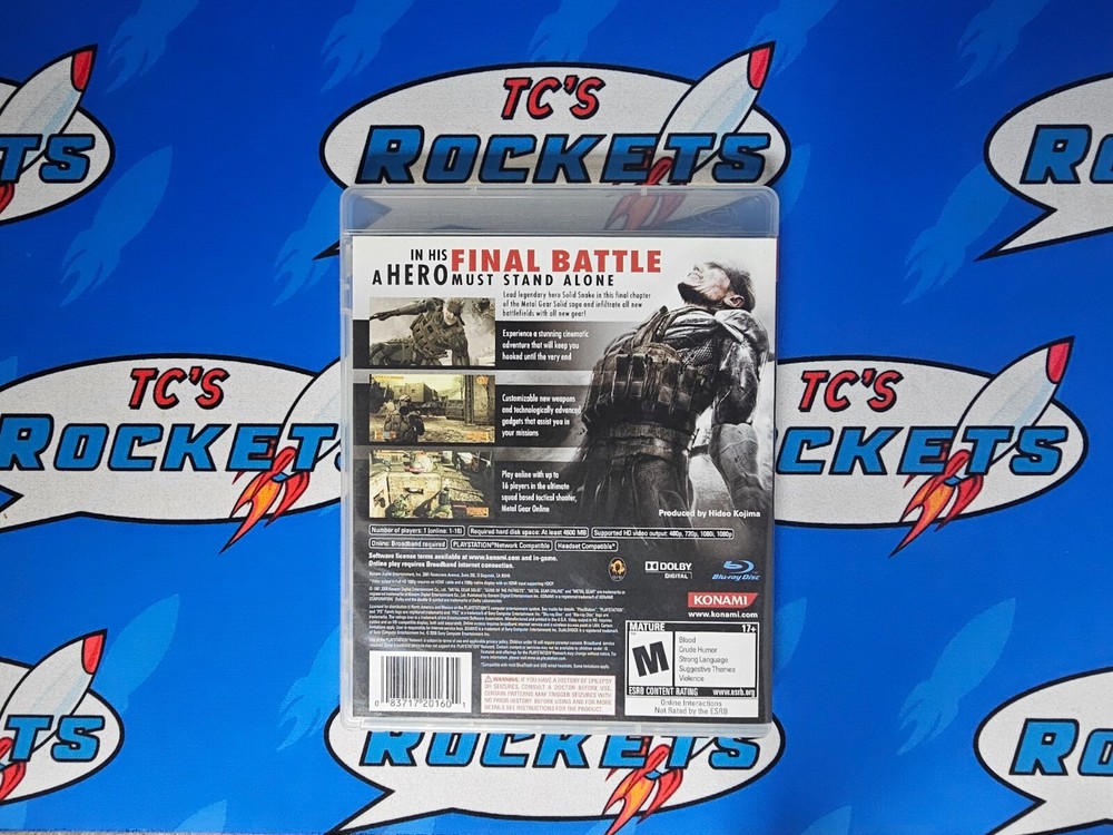 PS3 Playstation 3 Metal Gear Solid 4 Guns of the Patriots Tactical Espionage ED See photo for condition and items included. Message us if you would like to see additional photos. Combined Shipping - (may not apply to some items) To combine shipping add all items to cart and select the Blue Request Total button. (Only available on desktop) When we receive the request we will send you an invoice with the modified shipping fee appropriate for the items you have in your cart. Message us for combined shipping options if you are using a mobile device. Shipping Information - All orders will be shipped with tracking and will be securely packaged appropriate to the item(s) being shipped. Our shipping goal is to ensure the item arrives in the same condition as photographed or described. Orders are picked up from our store location in San Diego, CA Monday - Friday (excluding major holidays) Returns - Please message us first if you have a concern with your purchase or want to return your order. Orders that are returned without communication will be subject to a 10% restocking fee and will not receive original shipping fees returned. Items that are received incorrectly (we shipped the wrong item) or items that are damaged during shipment are not subject to a restock fee. Please message us first with photos so we can assist you with a resolution. Ebay Store Hours - We have a staff member working to answer questions Monday through Friday 9am - 5pm (Pacific Standard Time). Orders are pulled and packaged for shipment Monday - Friday excluding major holidays. Feedback - Please remember to leave us feedback after your order arrives. Feedback helps us to know you had a positive experience so we can keep up the good work. If we let you down, please message us for resolution before leaving feedback. We are here and we want to work with you to resolve your concerns. Thank you for shopping with our eBay store. We appreciate you! - TC's Rockets Staff