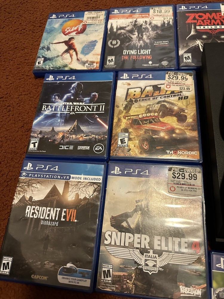 This PS4 bundle is a fantastic deal! It comes with 15 games, two controllers, and all the necessary cords—everything you need to start gaming right away. The console has normal wear but works perfectly, and the seller is open to negotiation. Great value for the price, especially with so many games included. Highly recommend for anyone looking for a complete setup!