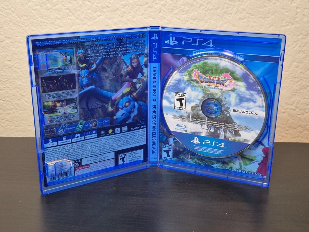 PS4 Dragon Quest XI Edition of Light Game Complete CIB Mint Disc 2018 Game disc is in mint condition. The artwork looks great and is a reversible cover. The case has a like new finish. Overall this game was well taken care of.