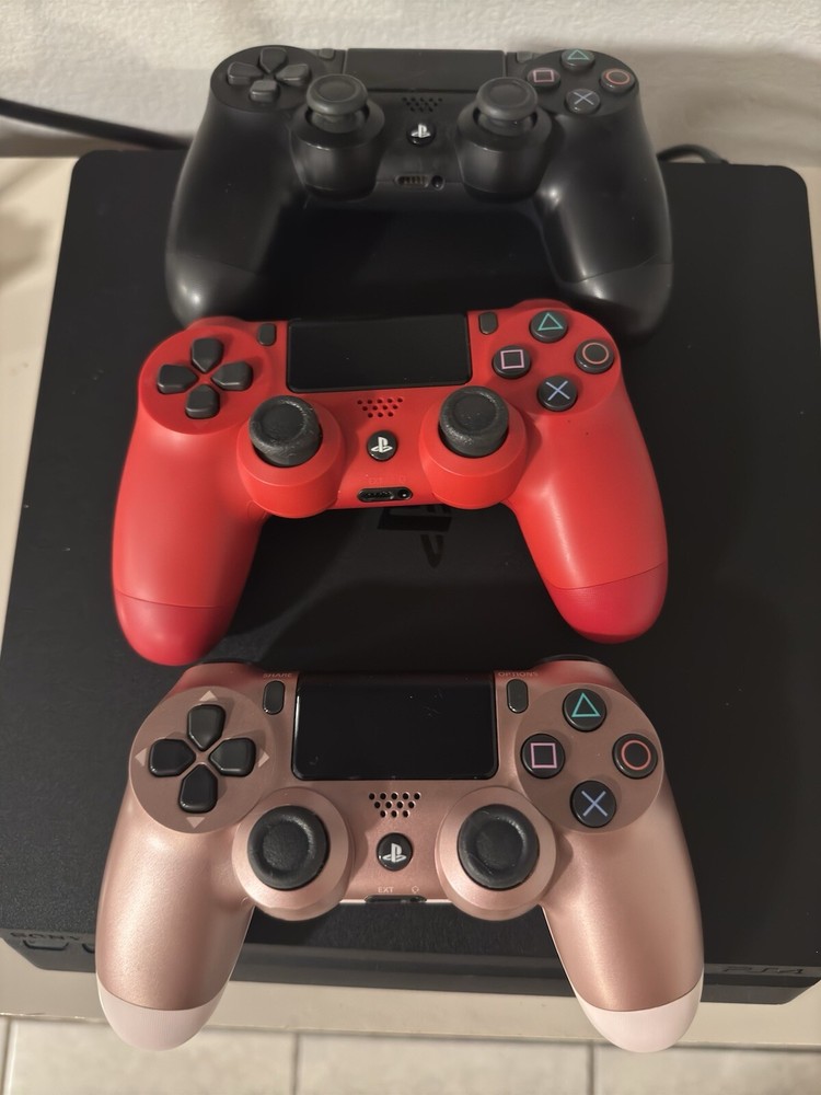 PS4 Slim 1TB With 3 Controllers Plus Charging Dock for Controllers. Selling because I have another console and I’m freeing up some space. Used, like new!