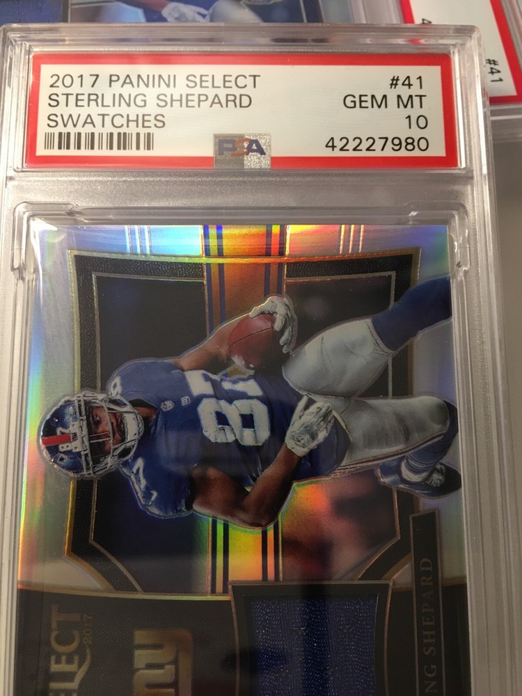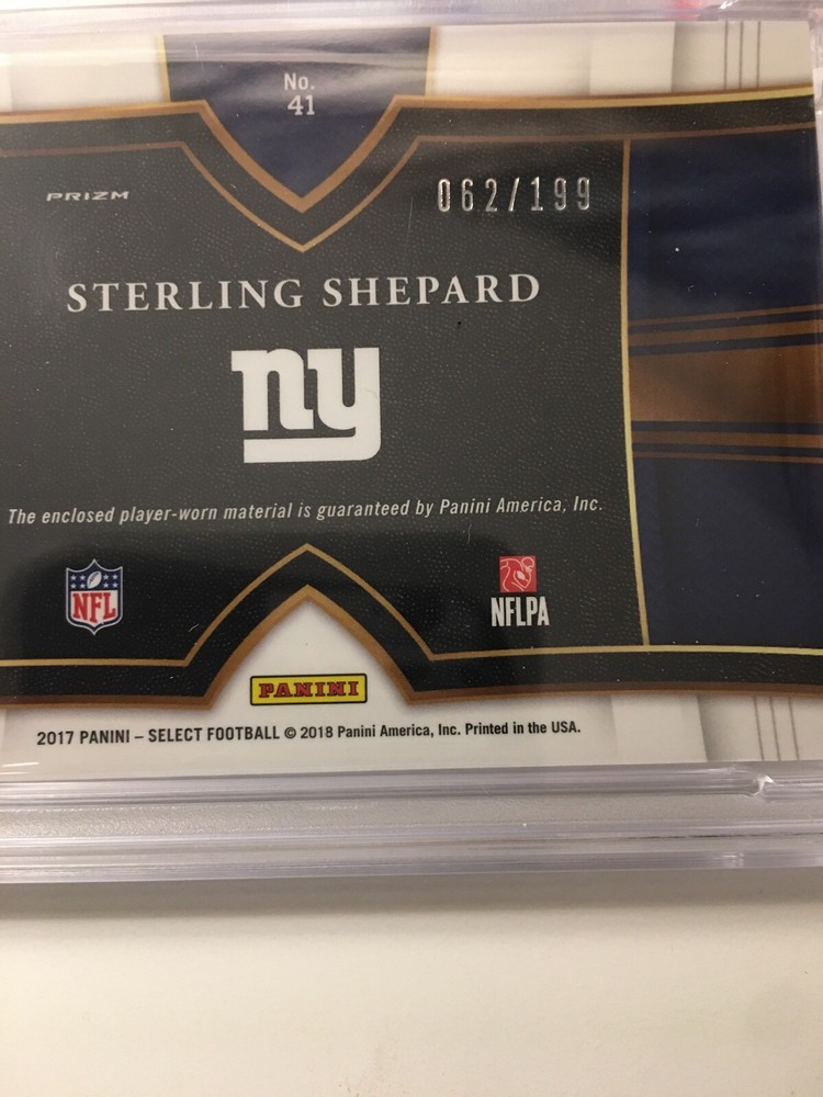 Part of my Sterling Shepard Pc. PSA 10 Gem 2017 SELECT STERLING SHEPARD swatches Prizm /199 GIANTS. Condition is Like New. Shipped with USPS First Class Package.