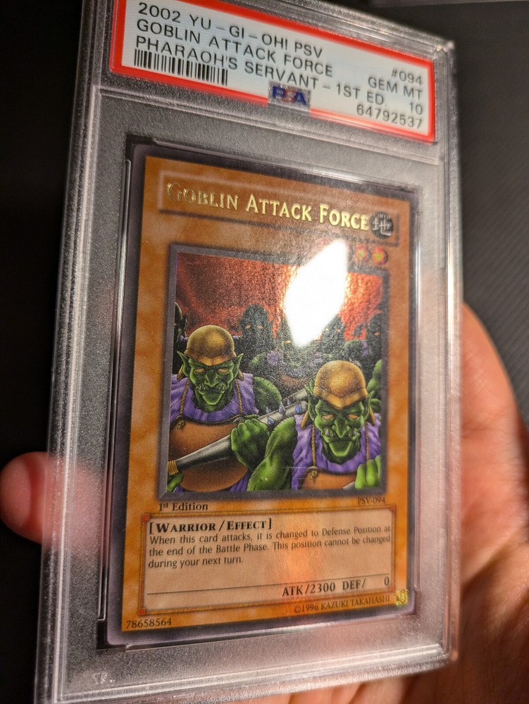 Up for sale here is a Goblin Attack Force PSV-094 1st edition ultra rare. The card has been professionally determined by PSA to be in Gem Mint condition. Any questions please ask!