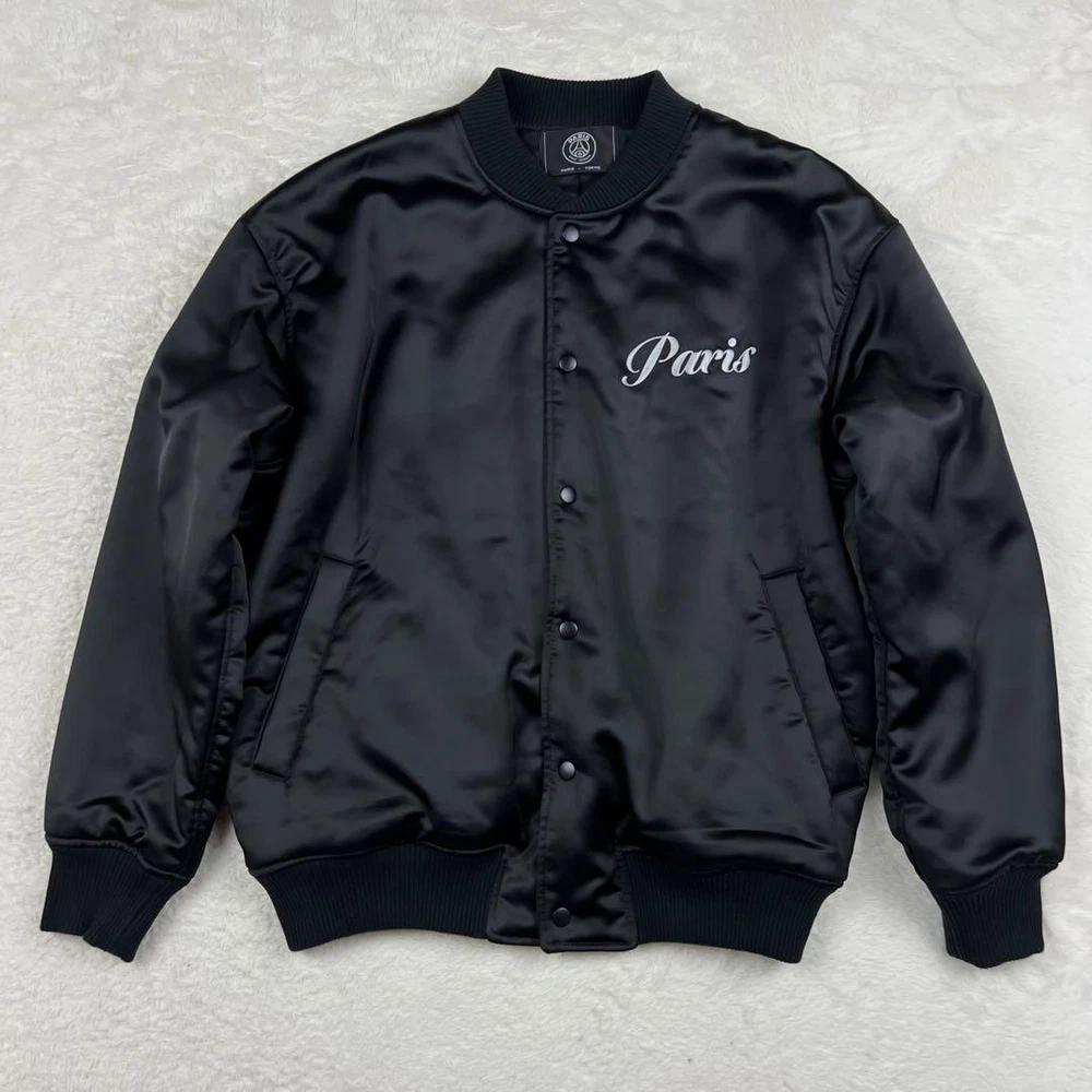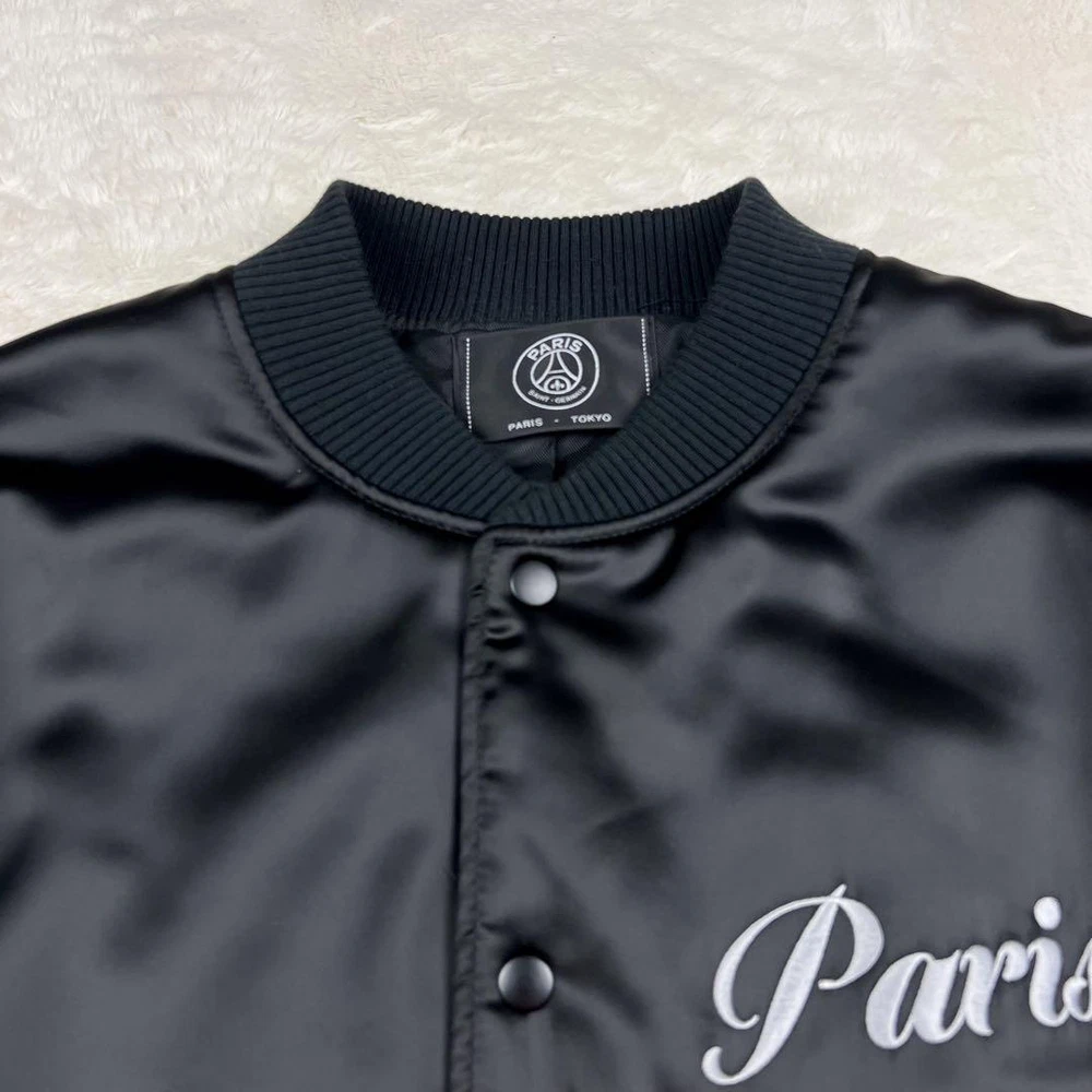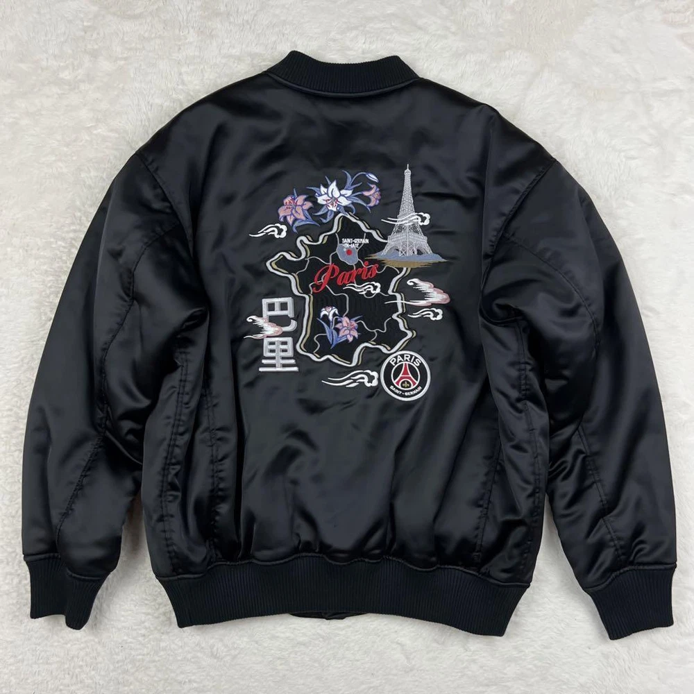 PSG Paris Saint-Germain Sukajan Black Embroidery Jacket Map Eiffel Tower M Key Features **TAORAI Men's PSG Paris Saint-Germain Sukajan Blouson Jacket** - **Brand**: TAORAI - **Product Type**: Sukajan Blouson Jacket - **Model**: Paris Saint-Germain Edition - **Color**: Black - **Material**: 98% Polyester, 2% Polyurethane - **Size**: M (Oversized fit) - Shoulder Width: Approximately 58 cm - Chest Width: Approximately 66 cm - Length: Approximately 68 cm - Sleeve Length: Approximately 60 cm - **Features**: - Front embroidered "Paris" logo - Back features a map of Paris and the Eiffel Tower with PSG logo - Front closure with hooks - **Condition**: Used, but no noticeable scratches or stains. Please refer to photos for details. This rare model is a collaboration with Beikurūzu EDIFICE, perfect for fans of Paris Specifications Brand Psg �E�EParis Saint-Germain Country Japan Type Jacket Style Sukajan Size Type Big & Tall Department Men Color multicolor Product Description Item Title Psg Paris Saint Germain Sukajan Embroidery Map Eiffel Tower Black M Payment Supports managed payments Please pay within 5 days after auction is finished. About Us We are located in Japan. It's our pleasure to make you happy by proposing our recommend item. If you have any questions or request about items, please feel free to ask us. International Buyers - Please Note: -Import duties, taxes, and charges are not included in the item price or shipping charges. These charges are the buyer's responsibility. -Please check with your country's customs office to determine what these additional costs will be prior to bidding/buying. -These charges are normally collected by the delivering freight (shipping) company or when you pick the item up - do not confuse them for additional shipping charges. -We do not mark merchandise values below value or mark items as - gifts - The US and International government regulations prohibit such behavior. Thank you for your understanding.