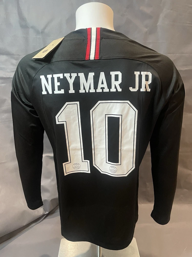 Get ready to show your support for your favorite soccer team with this stylish PSG Retro Away Jersey. This black long sleeve jersey features the iconic Paris Saint-Germain logo and Neymar Jr. #11 printed on the back. Made for large mens size, this jersey is perfect for any soccer enthusiast. With a capacity of 8 oz, this jersey is perfect for wearing during games or as a collector's item. Represent your team with pride and show off your love for soccer with this must-have PSG Retro Away Jersey. Order as soon as possible to receive before holidays if you have any questions lemme know!