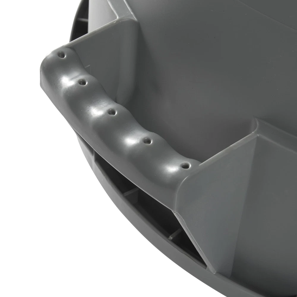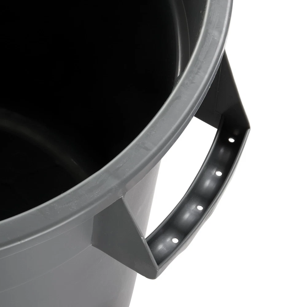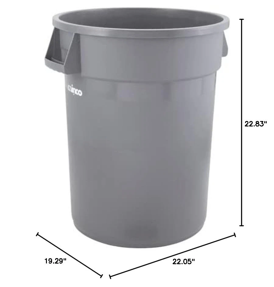The PTC-20G is a 20 gallon round commercial-grade trash can designed for daily use in commercial environments ideal for restaurants, offices, warehouses and garages. This gray 20 gallon trash can features thick walls and a reinforced based to maximize longevity. The double-drag collar design cradles the waste container when dragged improving maneuverability. The base of the trash can features locking threads that can be used to secure to a waste container dolly (sold separately; item DLR-18). The ergonomic handles feature finger grips to ensure a comfortable and secure grip when lifting. Pair this waste container with a tight fitting lid (sold separately) to lock in odors and keep pests out. Heavy-Duty – Reinforced walls and base with structural ribs improve support and designed to withstand daily use in a commercial environment Double Drag Collar – Specially designed collar cradles the can when dragged for maximum durability Locking Dolly Threads – Quickly and easily secures to dolly for easy transport (sold separately; item DLR-18) Ergonomic Handles – Built in handles with finger grips allow for a comfortable and secure grip when lifting Tight Fitting Lids – Trap odors and keep pests out with the tight fitting lid (sold separately)