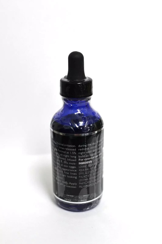 MPN:N/AVolume:2 fl ozCountry/Region of Manufacture:United StatesFeatures:Animal Cruelty-Free, Contains RetinolUPC:0670367063217Formulation:SerumIngredients:please see container for detailsBrand:Peter Thomas RothProduct Line:PeterThomasRoth Retinol Fusion PM Night SerumType:Night TreatmentSize:RegularActive Ingredients:please see container for detailsPeriod After Opening (PAO):12MBody Area:Eyes, Facegtin13:0670367063217Main Purpose:Age-Defying, Early Signs of Aging, HydrationSun Protection Factor (SPF):noneUVA Protection:1-Star