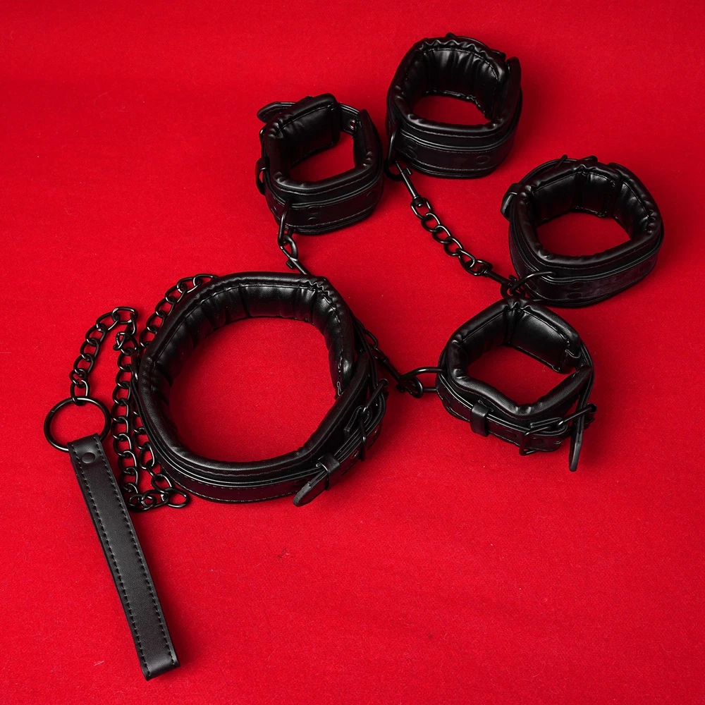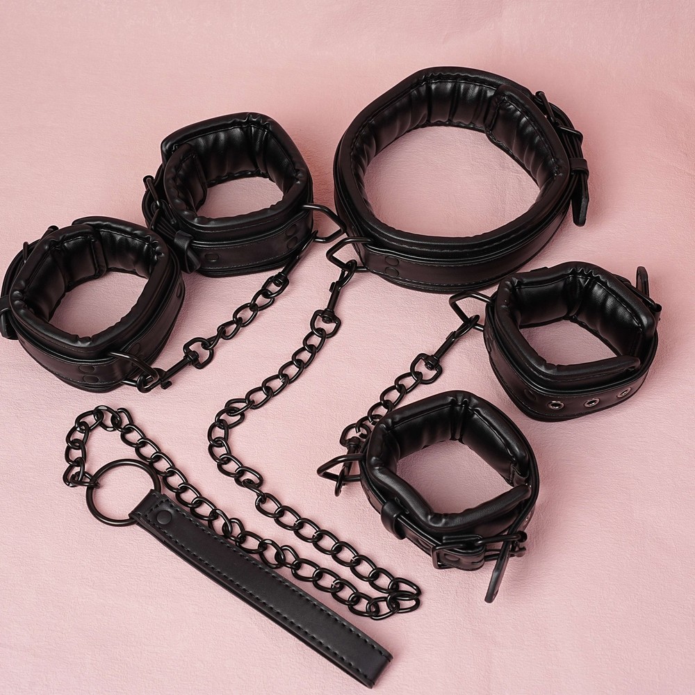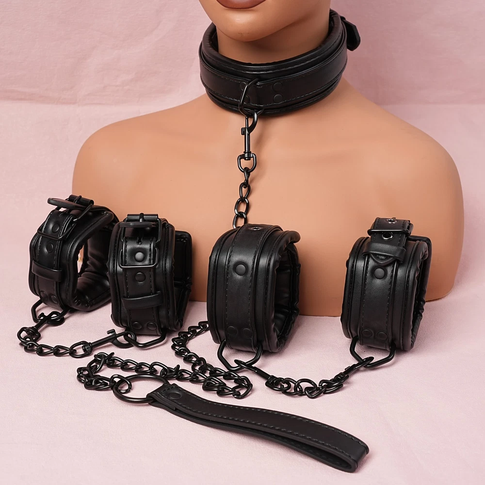 Discreet Packing : 1. 100% discreet shipping guarantee on package and no wirting on the package. 2. Nothing written on the packaging or label - It is impossible to tell what is inside the packaging. Feature: Condition:100% Brand New Size: free size fits for most Material: Good quality PU Leather/Real leather Color: Black(As picture shown) The Chains on the cuffs are all removable. Completely safe and entirely satisfying to the touch Healthy and non-toxic products. Size: Handcuffs Length: 23cm, adjustable: 16-26cm Anklecuffs Length: 28cm, adjustable: 21-31cm The metal chain between cuffs is about 15cm long. Collar Length: 39cm, adjustable: 31-43cm Traction chain length of about 58cm, the handle is about 16cm long. Notes: 1. Due to the difference of light and screen setting, The color of the object may be slightly different from the images. 2. Manual measurement, for measuring methods and technique is different, there may be 1-3 cm error. 3. To protect your privacy, all items will be carefully packed in normal packaging without return address or labeling ambiguous content. Contact: Please contact us first if you have any questions. Thank you!