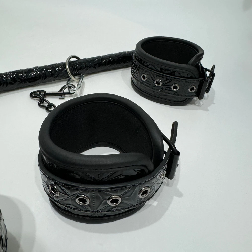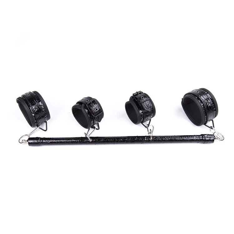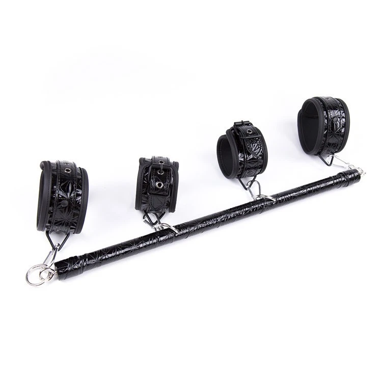 D iscreet Package Feature: Made of Faux Leather Metal material, completely safe and entirely satisfying to the touch 100% Brand New and High quality Specification: Material: Faux Leather+Metal Handcuffs: 32cm*5.5cm, Adjustable: 17-27cm Ankle Cuffs: 37cm* 5.5cm, Adjustable: 22-32 cm Open Leg Bar: 50cm Package includes: 1* Hand cuffs 1*Ankle cuffs 1* Open Leg Bar Friendly Tips: The size is measured by hands, please allow minor error of measurement. Photo color might be a little different from the actual product due to color display of different monitors.