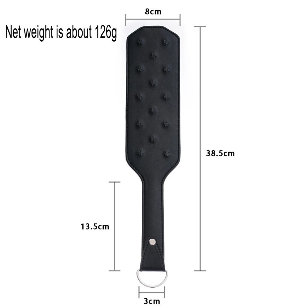 Description : Material :PU Leather Color:Black Size : As picture shown Package Include: 1 pc Paddle Helps to spice up the atmosphere between couples and lovers. It can give you exciting experience. A small toy to enrich your love life. Made of premium leather, the paddle is safe and harmless. It is light an d easy to use. The handle is designed for better grip an d allows you to hang it on t he wall to save space. I t can give you exciting experience. Ideal for couple role play and costume. It can really spice up the sex life between couple. Package: Discreet package , Protect your privacy