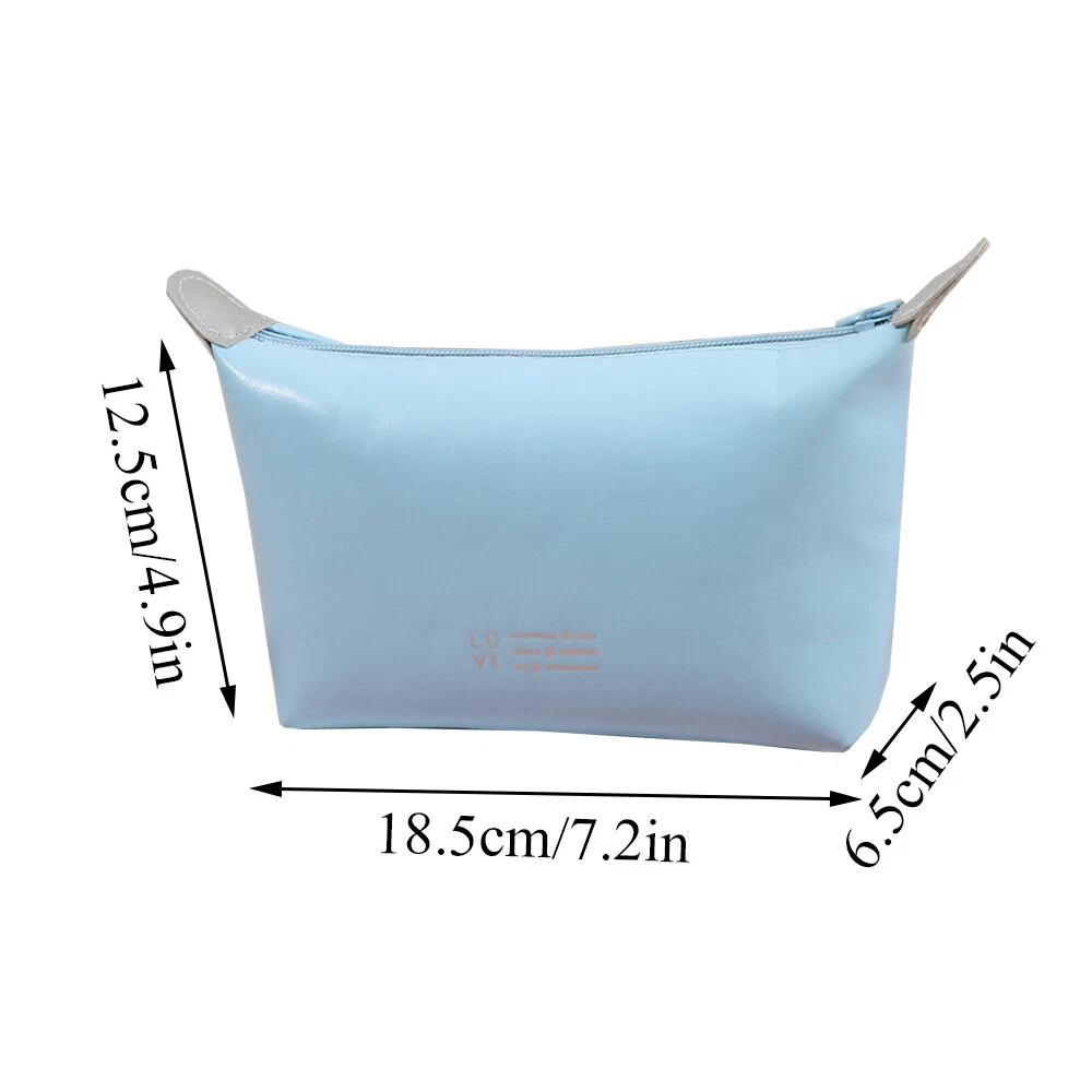 This makeup bag is a stylish and practical must-have! The PU material feels durable yet lightweight, perfect for travel or daily use. Love the range of colors—I got the light blue and it’s even prettier in person. Spacious enough to hold all my essentials without being bulky. The size is just right for tossing in my purse or suitcase. Great quality for the price; highly recommend for anyone needing a cute, functional storage solution!