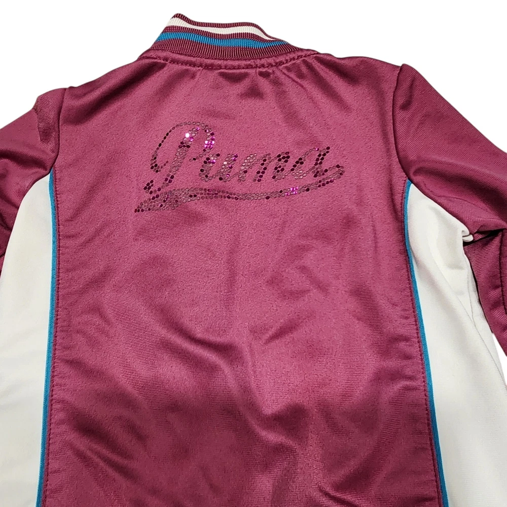 Dress your little one in comfort and style with the PUMA 2 Piece Track Suit, a perfect blend of functionality and casual wear. This adorable set includes a full-zip jacket and matching pants, both designed with a playful purple hue that's sure to stand out. The jacket features a convenient full zipper closure and pockets for practicality, while the pants offer a snug fit for active toddlers. Crafted with a blend of cotton and polyester, this outfit is both soft and durable, making it ideal for the energetic movements of little athletes. The set boasts PUMA's iconic 3 Stripes and logo accents for a touch of brand prestige, and the long sleeves make it suitable for cooler seasons like fall, spring, and winter. Whether it's for sports activities or casual outings, this track suit is a versatile addition to your child's wardrobe.