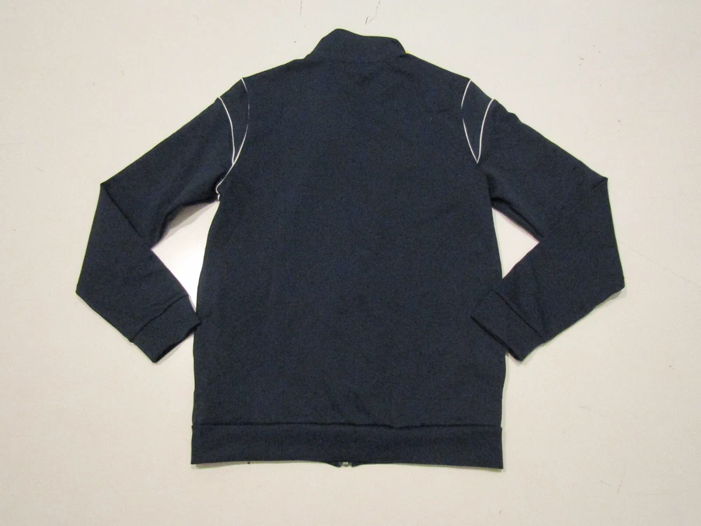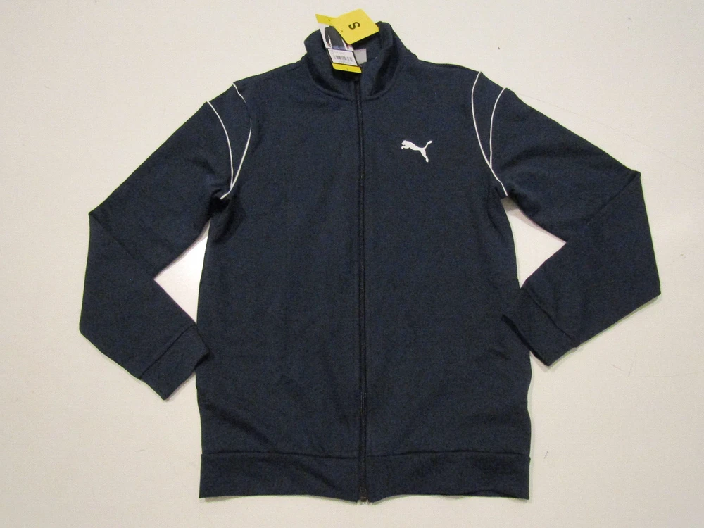 This men's jacket is brand new with Tags! **A stock photo from our inventory has been used to save time. You will get the size in the listing, not the picture.** PUMA Made by Puma, this jacket is a great find! It is a "Blue" with White color accents. It zips up the front and has long sleeves. It is collared and is the track jacket style! It has 2 front pockets to help keep your hands warm. Made of 55% Cotton and 45% Polyester. I do my very best to give accurate measurements. If you have any questions on the measurements, or anything else, please ask! Size: Small Underarm to Underarm Measurement: 21 inches laying flat Length: 27.5 inches Top of shoulder to the hem Shipping to the United States is FREE This includes FREE delivery confirmation in the United States only! Check out my other items because I will always combine shipping! Be sure to add me to your favorites list ! Please submit payment in 7 days of the end of this auction. If payment hasn't been received and contact has not been made in those 7 days, eBay will be notified and negative feedback left. If you have a question, please ask prior to bidding because I am happy to answer questions you have! If you are an International bidder, any and all customs charges are the sole responsibility of the buyer and the seller assumes this is understood upon purchase. Thank you and have a great day! 222