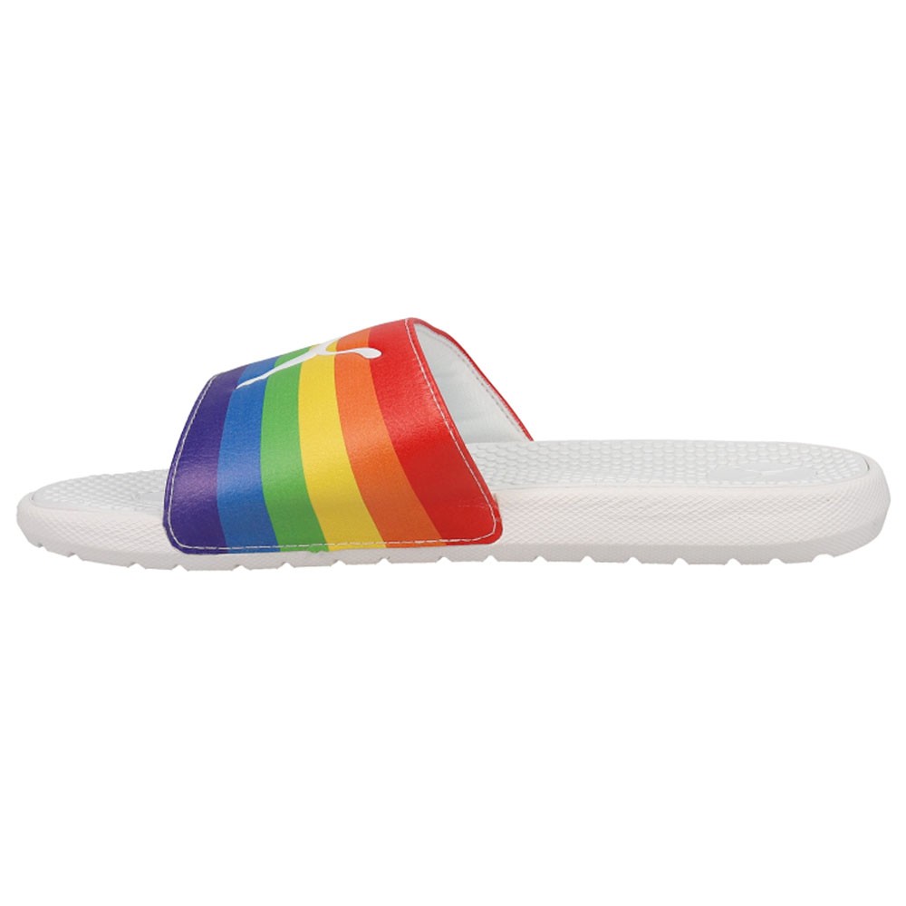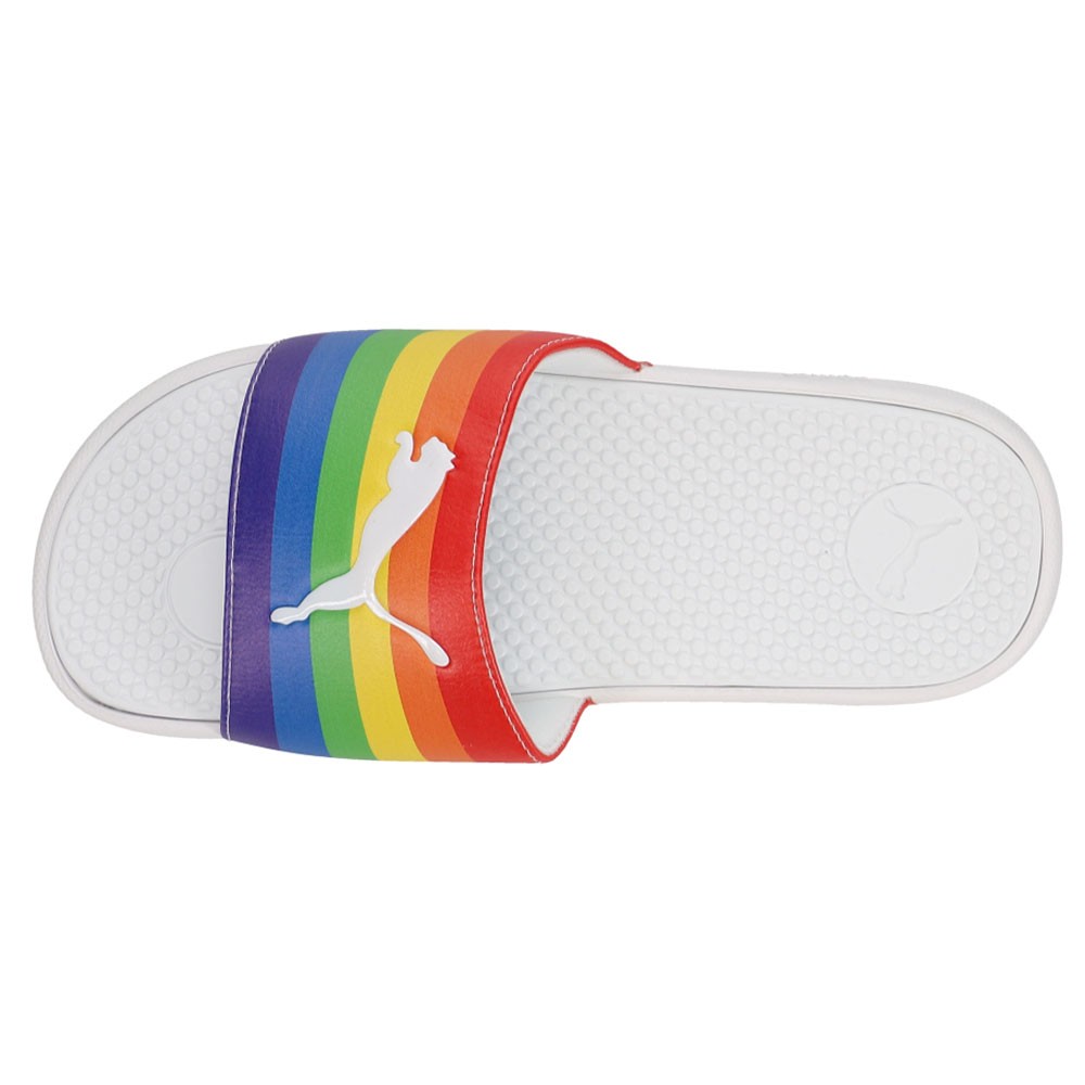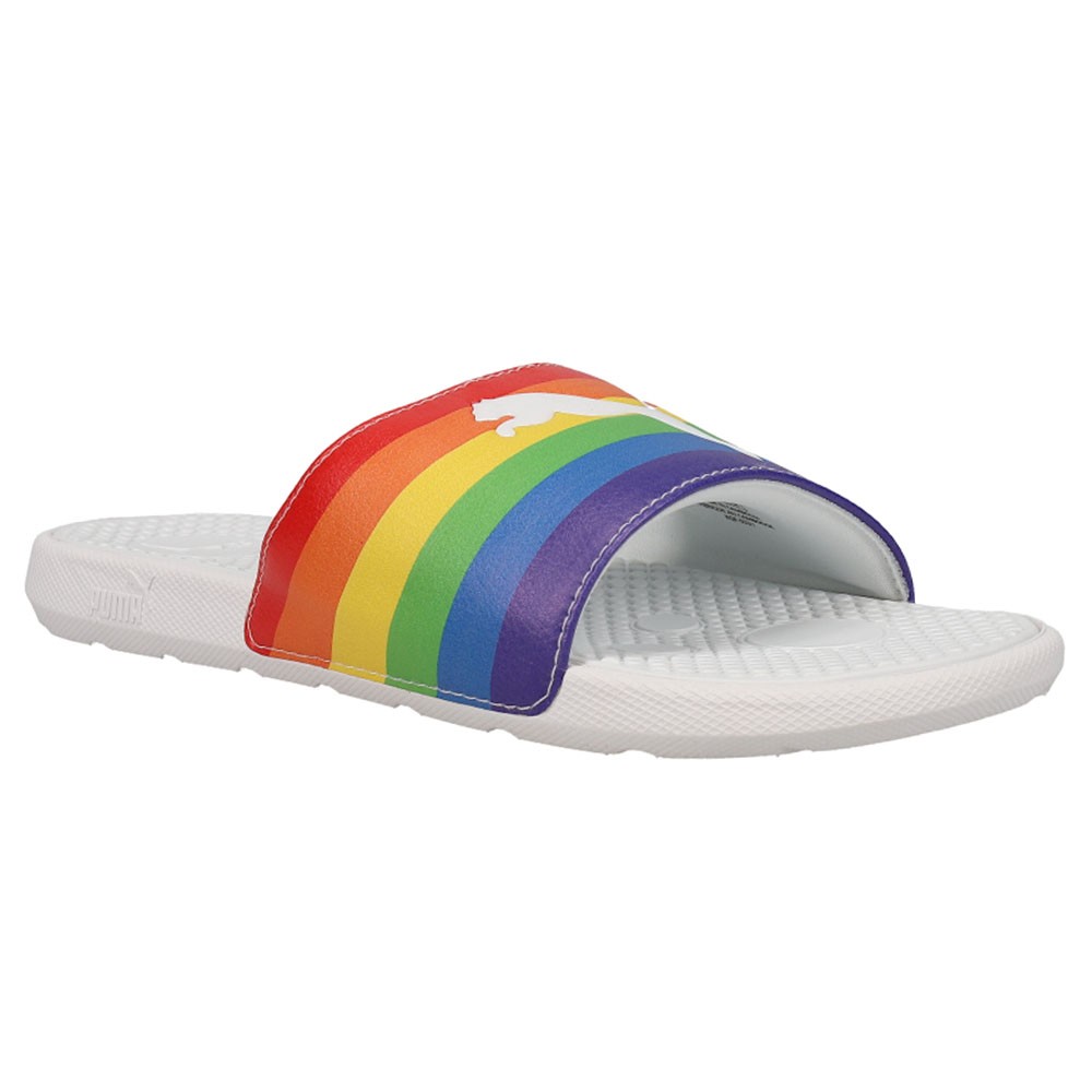 Cool Cat Rainbow II Slide Sandals (Big Kid) Product Details Leather upper Slip on entry Padded collar Rubber outsole Color: Puma White/Dandelion/Vibrant Orange These rainbow cool cat sandals are a great sandal to enjoy in the summer time! Additional Details Manufacturer Color: Puma White/Dandelion/Vibrant Orange Color: White Occasion: Casual Gender: Girls Age: Youth Brand: Puma